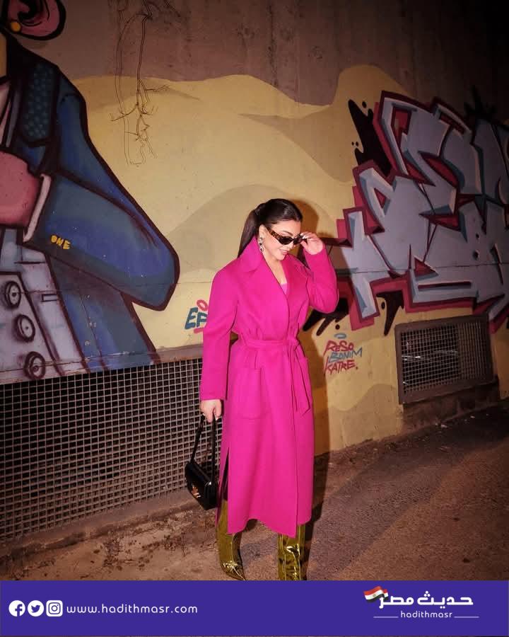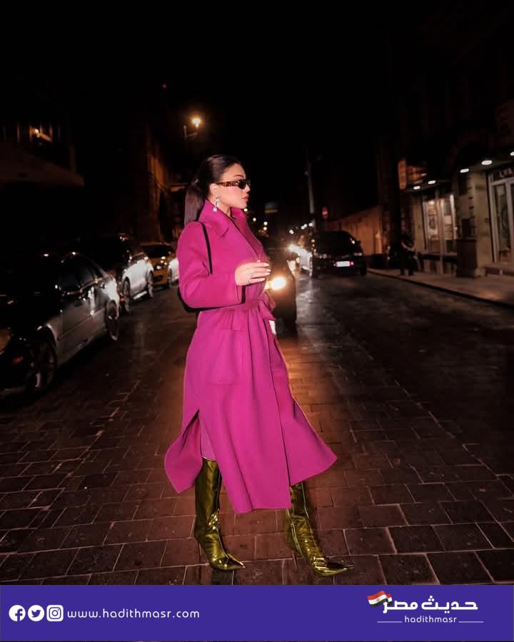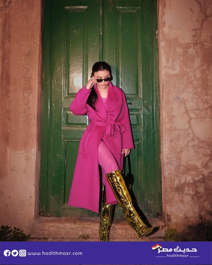 ارتدت هيفاء وهبي في صورها الأخيرة معطفا باللون البينك ونسقته مع جوارب ثقيلة من نفس اللون، ونسقته مع حذاء باللون الذهبي برقبة عالية من دار Alexandre Vauthier، ويصل سعره إلى 61 ألف و378 جنيه، وحقيبة من Celine ذهبية اللون