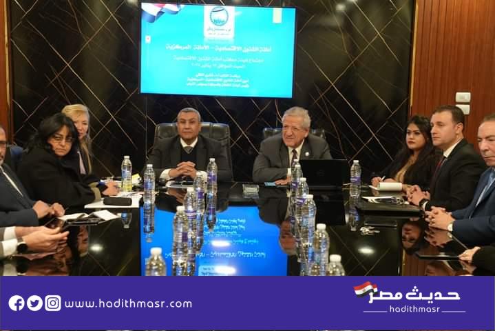 وخلال الاجتماع، ناقش الأمناء المساعدون وأعضاء هيئة مكتب أمانة الشئون الاقتصادية، أبرز ما جاء في وثيقة الدولة الاقتصادية وأبرز المشكلات التي تواجه الاقتصاد المصري خلال المرحلة الحالية ووضع حلول لهذه المشكلات وتأثير الأزمات الدائرة في منطقة الشرق الأوسط على الاقتصاد العالمي