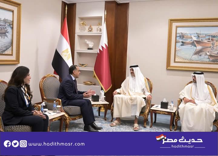 وقال المستشار محمد الحمصاني، المتحدث الرسمي باسم رئاسة مجلس الوزراء، إن صاحب السمو الشيخ/ تميم بن حمد آل ثاني، أمير دولة قطر، أعرب، خلال اللقاء، عن تقديره للدور المُهم والريادي الذي تلعبه الدولة المصرية في محيطها العالمي والإقليمي، في ضوء التطورات الحالية التي يشهدها الإقليم.