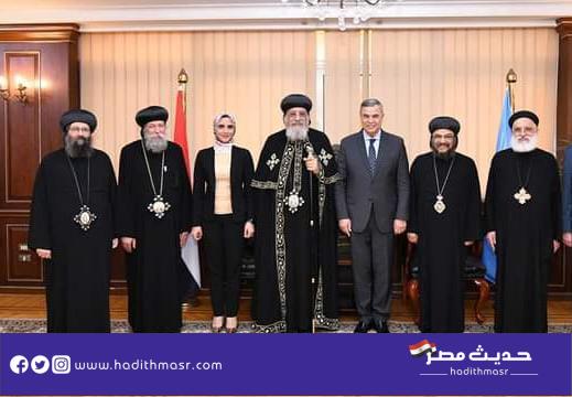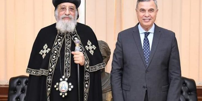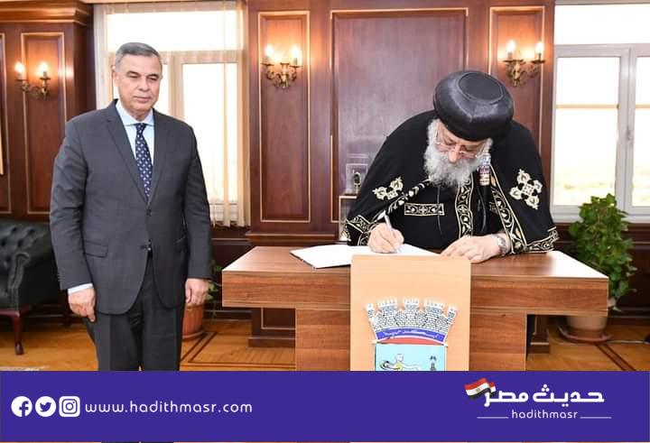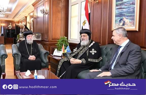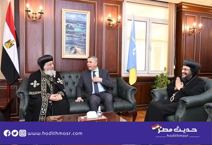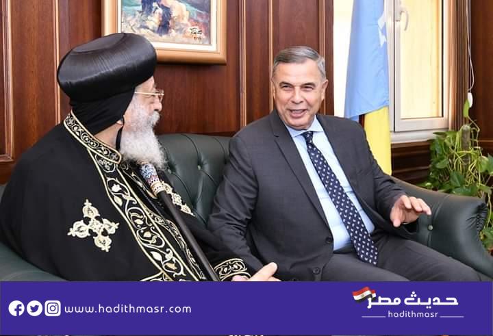 زار قداسة البابا تواضروس الثاني اليوم الثلاثاء مقر محافظة الإسكندرية لتقديم التهنئة الفريق أحمد خالد بتوليه منصبه الجديد محافظًا للإسكندرية