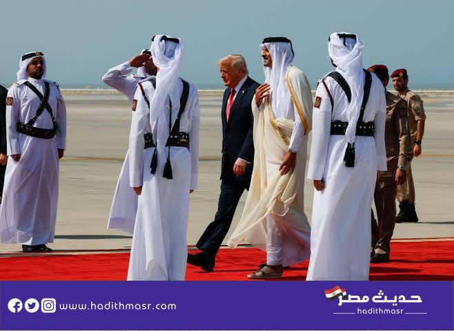 وكان أمير قطر الشيخ تميم بن حمد ل ثاني في استقبال ترامب بمستهل زيارته إلى الدوحة
