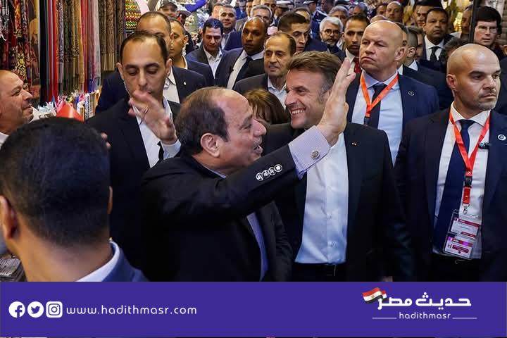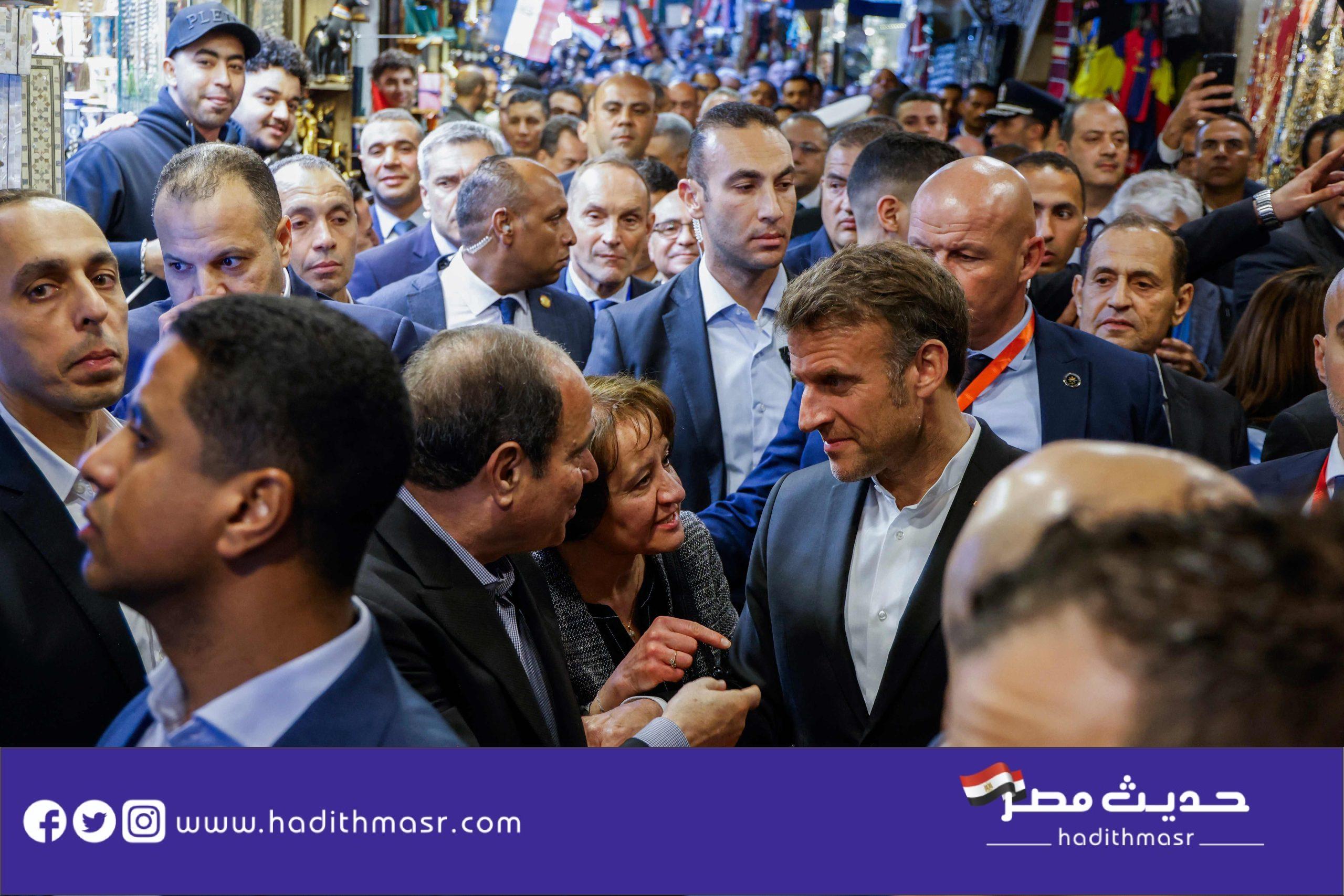 الرئيس السيسى يصطحب نظيره الفرنسى إيمانويل ماكرون فى جولة بمنطقة خان الخليلي بحي الحسين