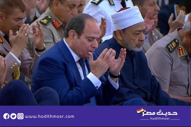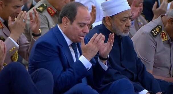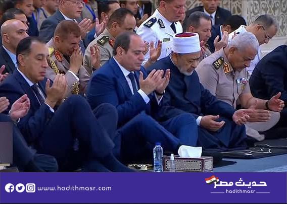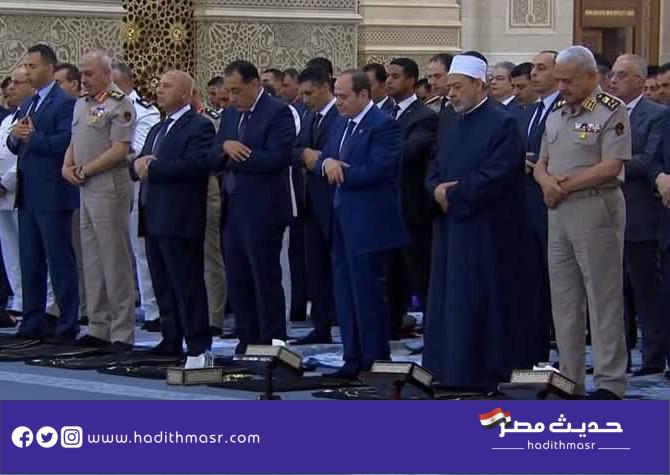 ادي الرئيس عبد الفتاح السيسي رئيس الجمهورية قبل قليل اليوم الجمعة صلاة عيد الأضحى المبارك بمسجد مصر بالعاصمة الإدارية الجديدة بحضور كبار رجال الدولة