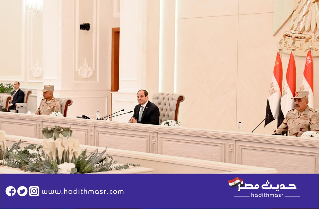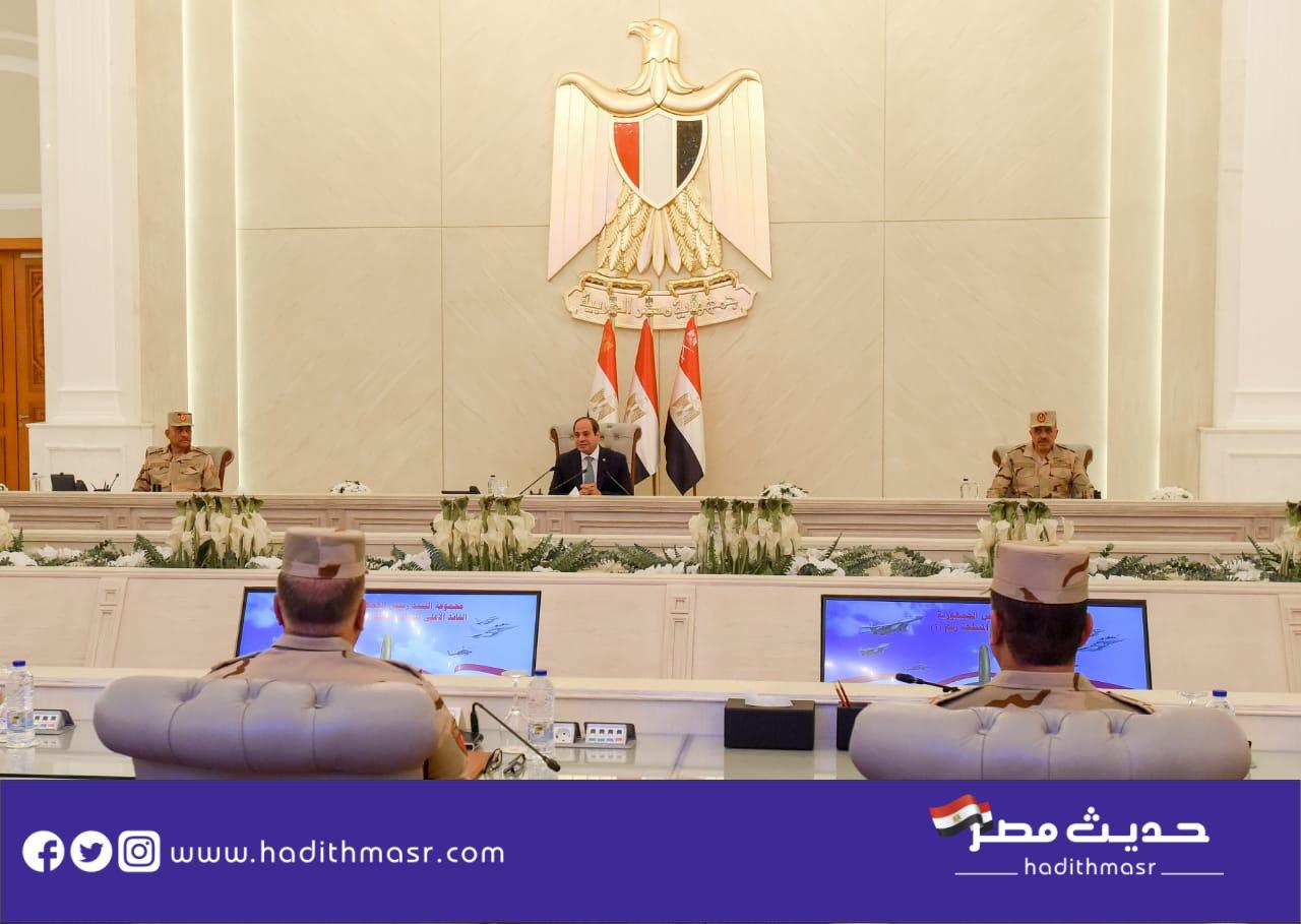 اجتمع الرئيس عبدالفتاح السيسي رئيس الجمهورية القائد الأعلى للقوات المسلحة، اليوم الخميس، بعدد من قادة القوات المسلحة، بمقر القيادة الاستراتيجية بالعاصمة الإدارية الجديدة، وذلك بحضور الفريق أول عبد المجيد صقر القائد العام للقوات المسلحة وزير الدفاع والإنتاج الحربي والفريق أحمد خليفة رئيس أركان حرب القوات المسلحة، وقادة الأفرع الرئيسية