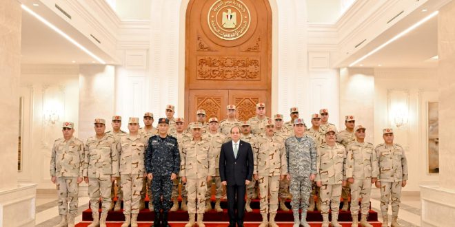 اجتمع الرئيس عبدالفتاح السيسي رئيس الجمهورية القائد الأعلى للقوات المسلحة، اليوم الخميس، بعدد من قادة القوات المسلحة، بمقر القيادة الاستراتيجية بالعاصمة الإدارية الجديدة، وذلك بحضور الفريق أول عبد المجيد صقر القائد العام للقوات المسلحة وزير الدفاع والإنتاج الحربي والفريق أحمد خليفة رئيس أركان حرب القوات المسلحة، وقادة الأفرع الرئيسية