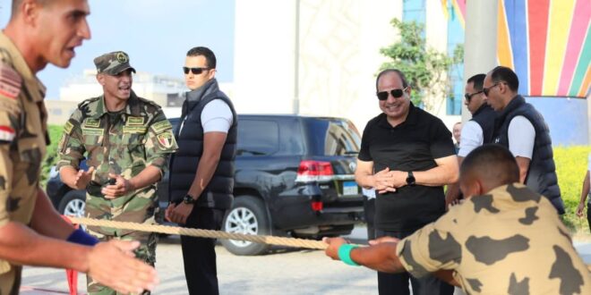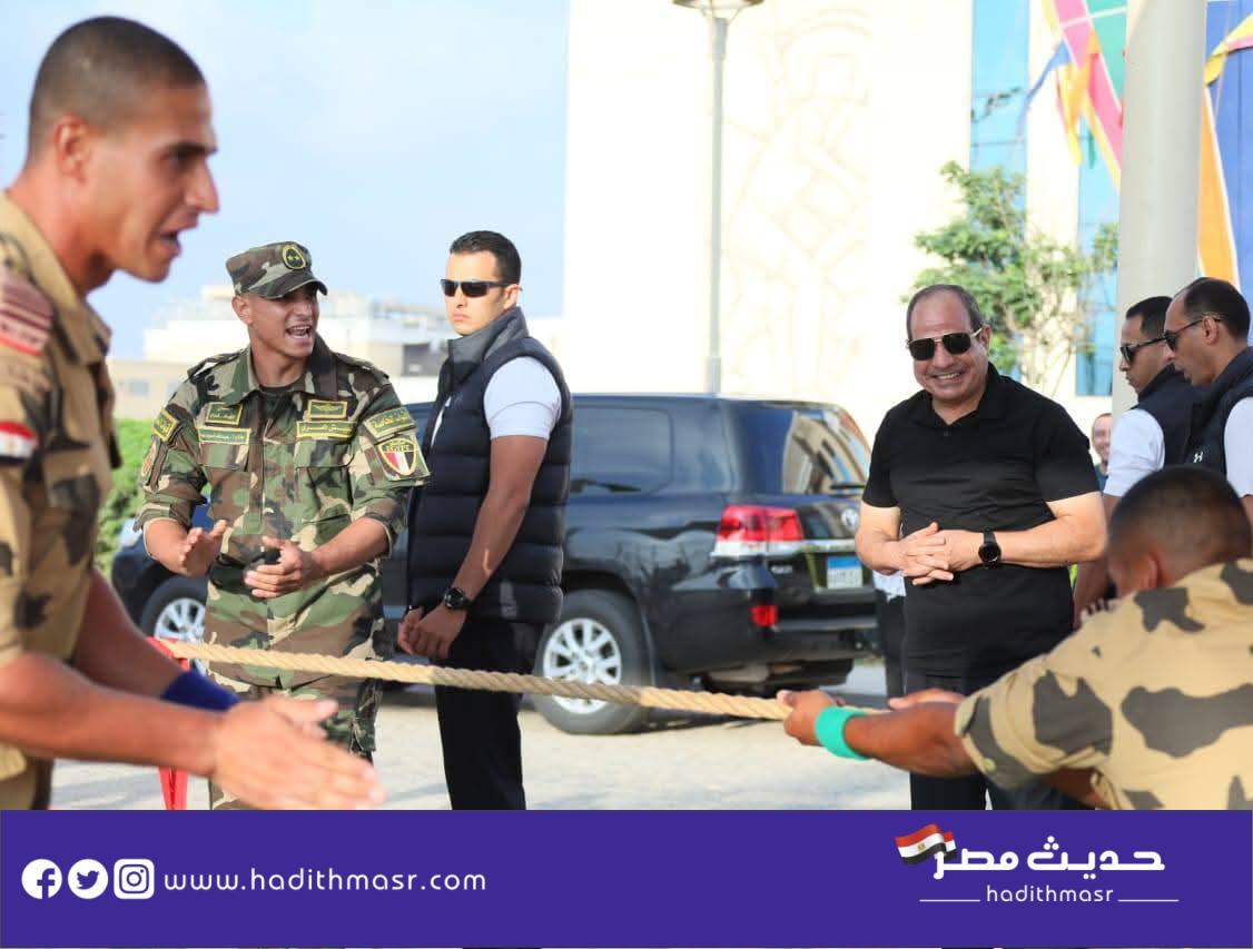 وذكر السفير محمد الشناوي، المتحدث الرسمي، أن الرئيس تابع عقب ذلك الطابور الصباحي للياقة البدنية لطلاب الأكاديمية، حيث أشاد سيادته في هذا الصدد بالمستوى الرفيع الذي يتمتع به الطلاب من حيث اللياقة البدنية والثقة بالنفس، والذي انعكس جليًا في أدائهم خلال التدريبات، كما شارك السيد الرئيس طلاب الأكاديمية العسكرية قي تناول وجبة الإفطار، حيث تبادل سيادته الحوار مع طلاب الاكاديمية، وتم التأكيد في هذا السياق على أهمية التفاني في التدريب والتحصيل العلمي، إلى جانب ضرورة الوعي بما يحيط مصر من أحداث محلية، وأزمات إقليمية، وتطورات دولية