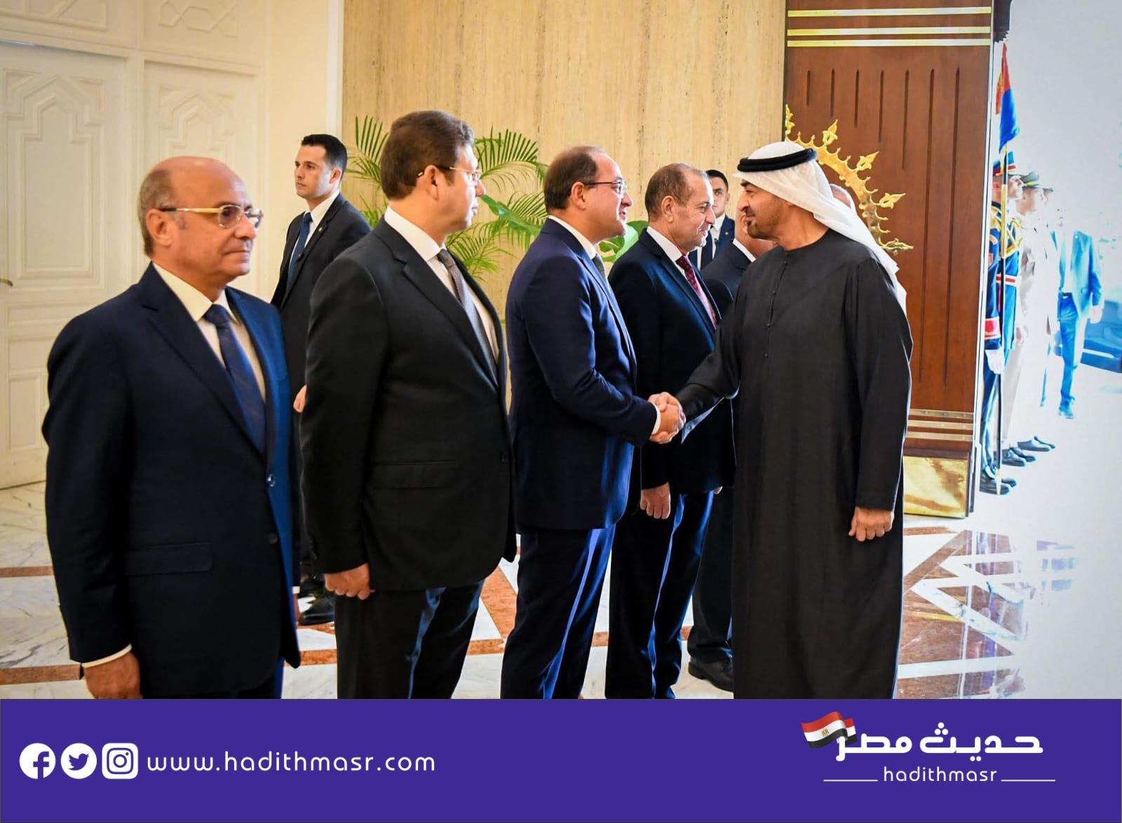 وصرّح المتحدث الرسمي باسم رئاسة الجمهورية بأن اللقاء شمل اجتماعاً موسعاً ضم وفدي البلدين، أعقبه اجتماع ثنائي مغلق بين الزعيمين، ثم مأدبة غداء عمل أقيمت تكريماً لضيف مصر الكبير والوفد المرافق لسموه. وقد استهل السيد الرئيس اللقاء بالتأكيد على عمق ومتانة العلاقات الثنائية بين مصر ودولة الإمارات، مشيداً بالتطور الملحوظ في التعاون بين البلدين في مختلف المجالات، لا سيما في مجالي التجارة والاستثمار. كما أعرب سيادته عن حرص الدولة المصرية على تذليل كافة العقبات أمام الاستثمارات الإماراتية، مثمناً الطفرة التي تشهدها العلاقات الاقتصادية بين الجانبين. من جانبه، أشاد صاحب السمو الشيخ محمد بن زايد آل نهيان بما يشهده مناخ الاستثمار في مصر من تطور كبير، يعكس الجهود المبذولة لتعزيز بيئة الأعمال وجذب الاستثمارات