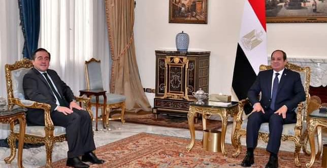 ومن جانبه؛ نقل الوزير الإسباني للسيد الرئيس تحيات وتقدير رئيس وزراء إسبانيا “بيدرو سانشيز”، وأشار إلى تأييد ودعم إسبانيا الكامل للجهود المصرية الدؤوبة لوقف إطلاق النار في قطاع غزة وإنفاذ المساعدات الإنسانية، مؤكداً محورية الدور الذي تقوم به مصر إقليمياً لوقف توسع دائرة الصراع، ودفع جهود إرساء السلام وتحقيق الاستقرار.