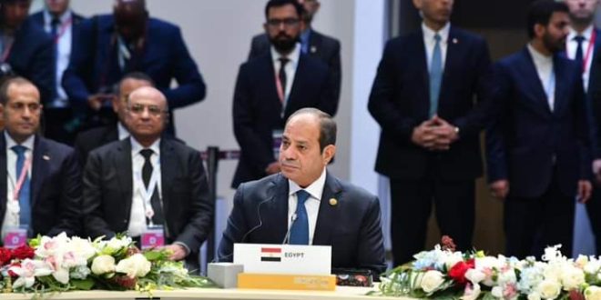 وصرح المتحدث الرسمي باسم رئاسة الجمهورية أن السيد الرئيس سلط الضوء خلال كلمته على الأزمات والصراعات الإقليمية والدولية المتصاعدة، والتي تدفع إلى العمل بقوة نحو ضمان فاعلية المنظومة الدولية، التى أظهرت بوضوح عجزها عن التفاعل مع الكارثة الإنسانية التى يشهدها قطاع غزة، والعدوان الإسرائيلي على لبنان، على الرغم من التحذيرات المستمرة من العواقب الوخيمة لهذا الصراع وتوسعه، مشدداً سيادته على الأهمية الكبيرة لتجمع البريكس، والدور الحيوي الذى يمكنه القيام به لتطوير المنظومة الدولية، مستعرضاً أولويات مصر في هذا الإطار، والمتمثلة في أهمية تعزيز التعاون المشترك لاستحداث آليات مبتكرة وفعالة لتمويل التنمية، على غرار مبادلة الديون من أجل المناخ، مع تعظيم الاستفادة من الآليات التمويلية القائمة، في ظل ارتفاع فجوة تمويل التنمية إلى حوالى “4” تريليونات دولار فى الدول النامية