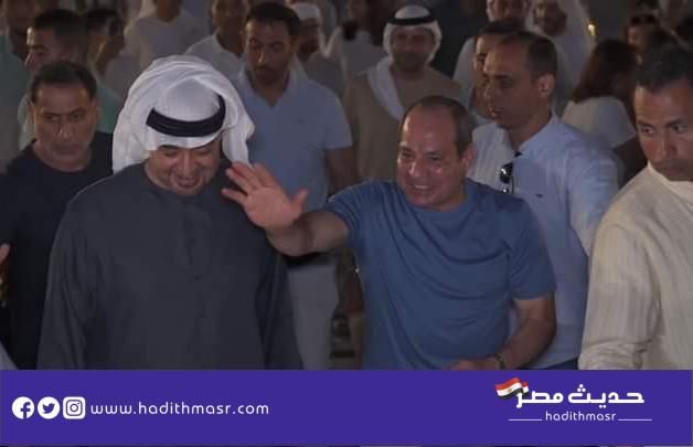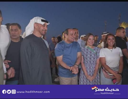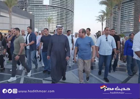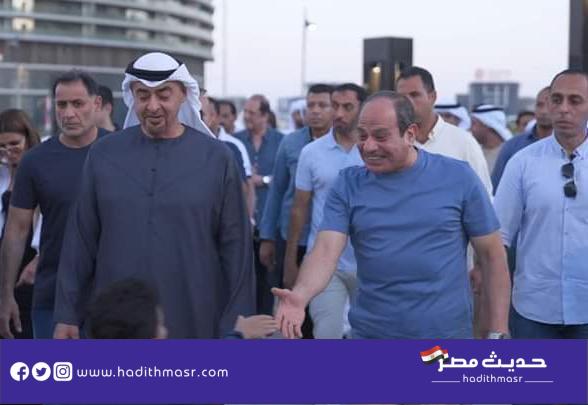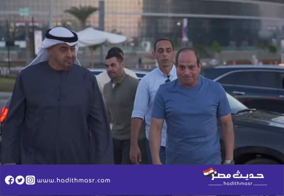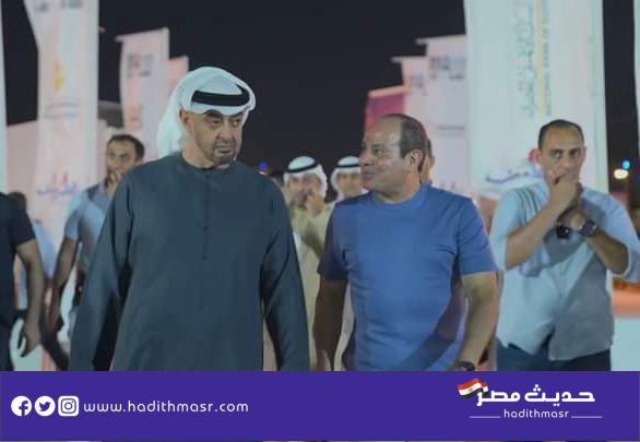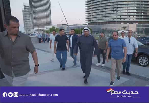 اصطحب الرئيس عبد الفتاح السيسي رئيس الجمهورية ” الشيخ محمد بن زايد آل نهيان رئيس دولة الإمارات العربية المتحدة، ضيف مصر، في جولة بمدينة العلمين الجديدة