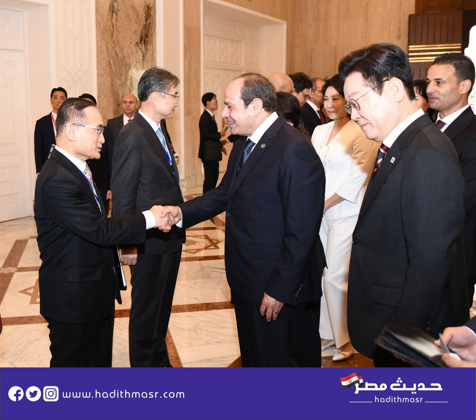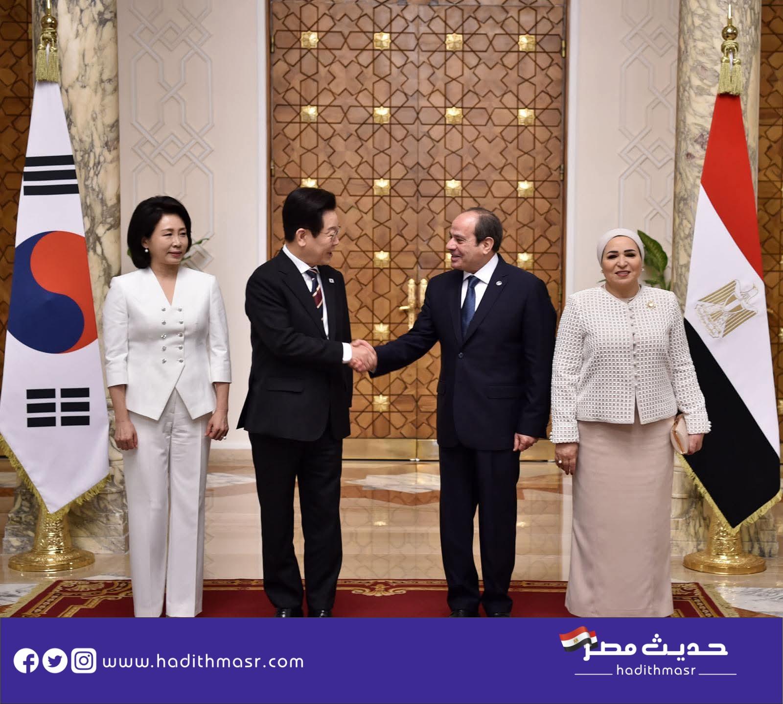استقبل الرئيس عبد الفتاح السيسي والسيدة انتصار السيسي قرينة السيد الرئيس، اليوم، الرئيس “لي جاي ميونغ” رئيس جمهورية كوريا والسيدة قرينته