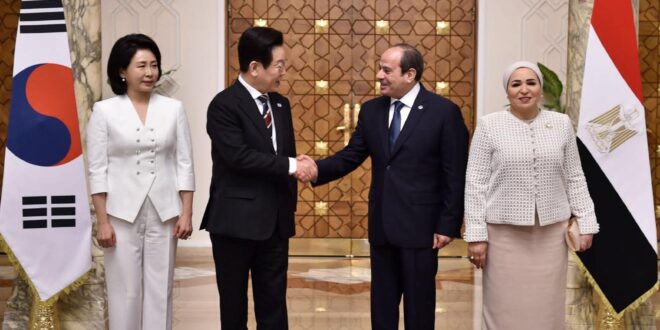 استقبل الرئيس عبد الفتاح السيسي والسيدة انتصار السيسي قرينة السيد الرئيس، اليوم، الرئيس “لي جاي ميونغ” رئيس جمهورية كوريا والسيدة قرينته