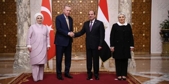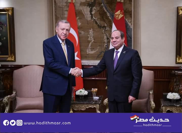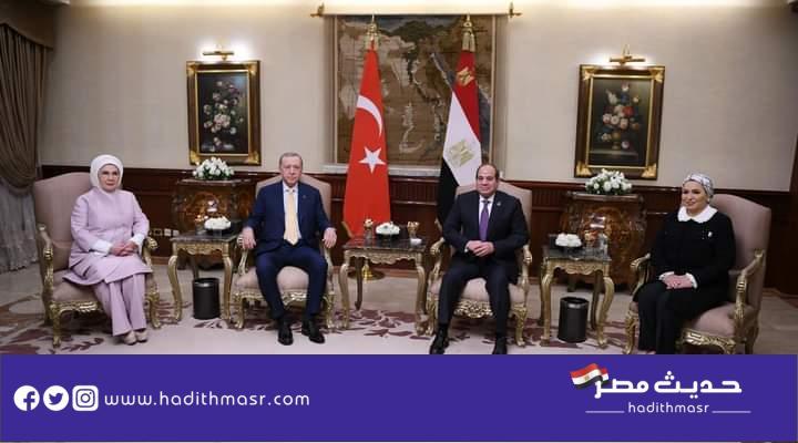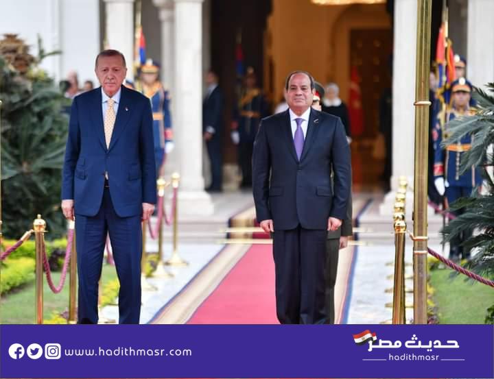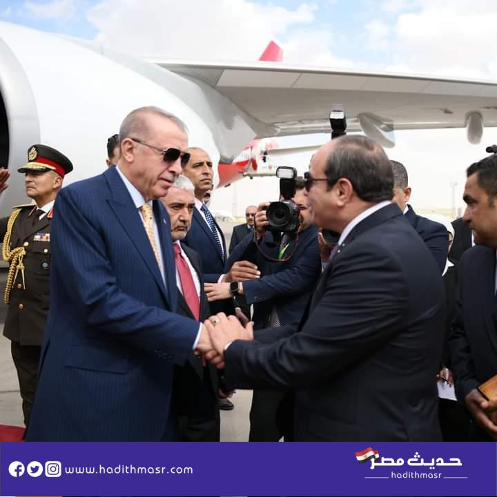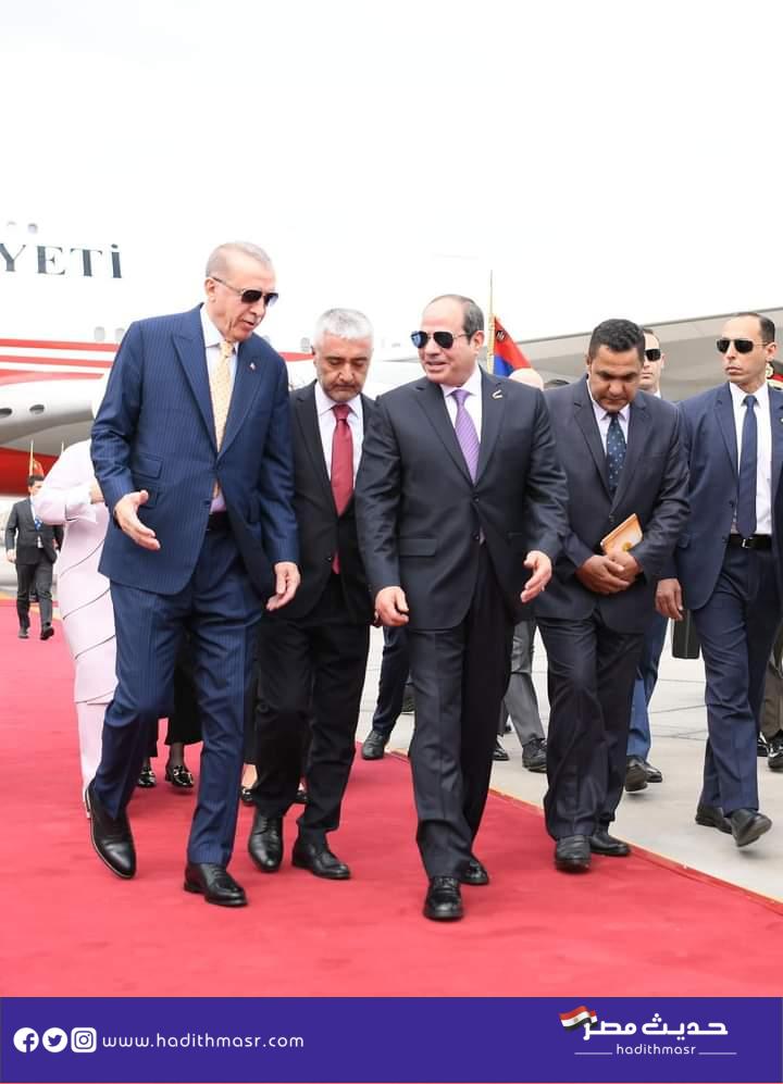 وكان وصل ارض مطار القاهرة الدولي الرئيس التركي رجب طيب أردوغان، في زيارة رسمية لمصر هي الأولي منذ أكثر من 11 عامًا، بدعوة من الرئيس عبد الفتاح السيسي في إطار استمرار التقارب بين البلدين