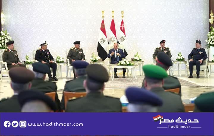 بدأ اللقاء بتقديم الرئيس السيسي التهنئة للقوات المسلحة بمناسبة ذكرى انتصارات العاشر من رمضان، والتي تأتي بالتزامن مع احتفال مصر والقوات المسلحة بذكرى يوم الشهيد والمحارب القديم، موجهاً التحية لأرواح شهداء الوطن الأبرار التي أنارت الدرب بكل العزة والفخر لإستكمال مسيرة العطاء وتحويل حلم رفعة الوطن وتقدمه إلى واقع ملموس تشهده كافة ربوع الدولة المصرية بكافة المجالات