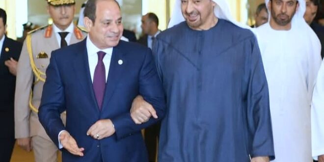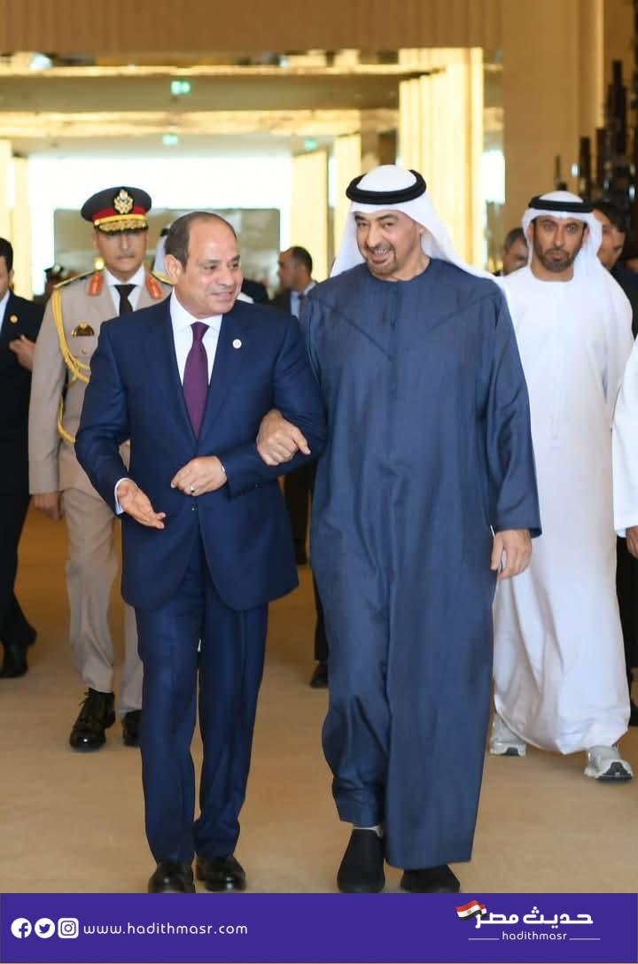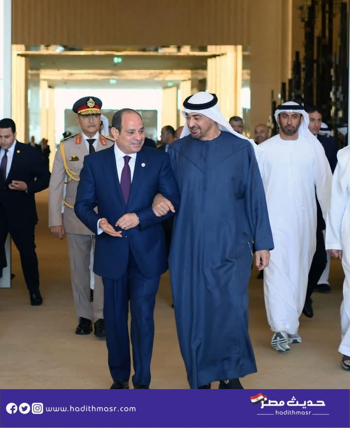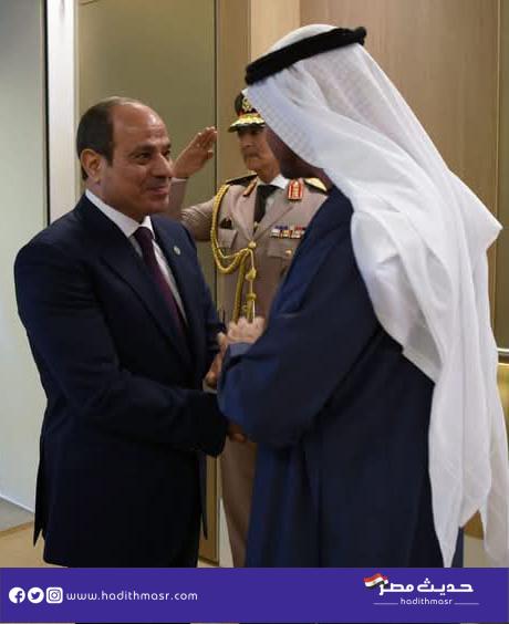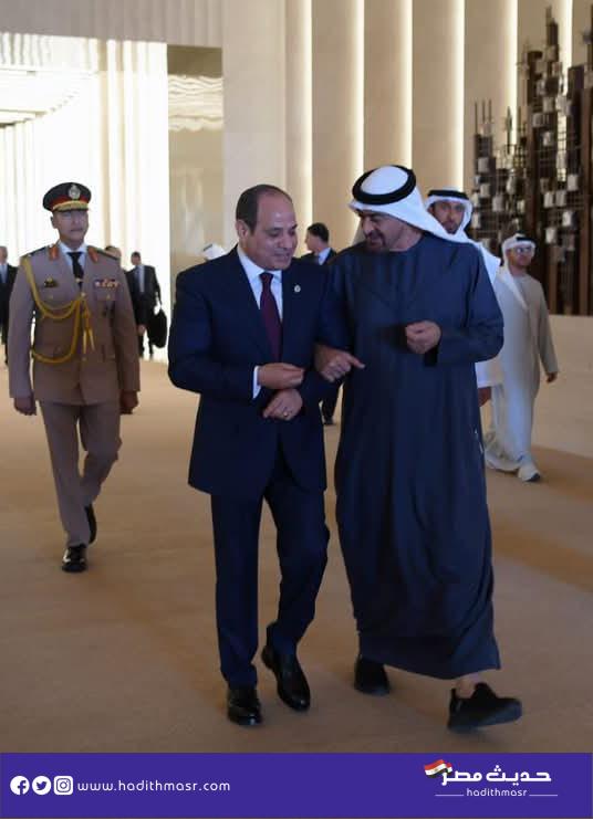 استقبل صاحب السمو الشيخ محمد بن زايد، رئيس دولة الإمارات العربية المتحدة، اليوم الأربعاء الرئيس عبدالفتاح السيسي في مطار أبوظبي الدولي. وبعد مراسم الاستقبال، توجه الرئيسان إلى قصر الشاطئ، حيث عقدا اجتماعًا تناول العلاقات الثنائية بين البلدين الشقيقين وسبل تعزيزها بما يحقق مصالح الدولتين وتطلعات شعبيهما الشقيقين، وبشكل خاص في المجالات الاقتصادية والتجارية والاستثمارية