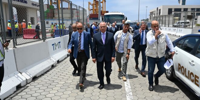 وعقب انتهاء الاجتماع توجه الفريق مهندس / كامل الوزير نائب رئيس مجلس الوزراء وزير الصناعة و النقل لتفقد محطة تحيا مصر متعددة الأغراض بميناء الإسكندرية ، لمتابعة أعمال التشغيل اليومي بالمحطة و التأكيد على الحفاظ على معدلات الأداء للمحطة كما تفقد الوزير مبنى الفحص المشترك و متابعة سير تطبيق كافة الإجراءات الجمركية لتنظيم حركة التجارة عبر الموانئ، ، وضمان سلامة البضائع وحمايتها من التهريب والمخالفات وكذلك تم تفقد المستودع رقم أ و الذى تم إسناده لشركة مارين يونايتد لإدارته و تشغيله ثم توجه إلى محطة شحن الحاويات RCS،
