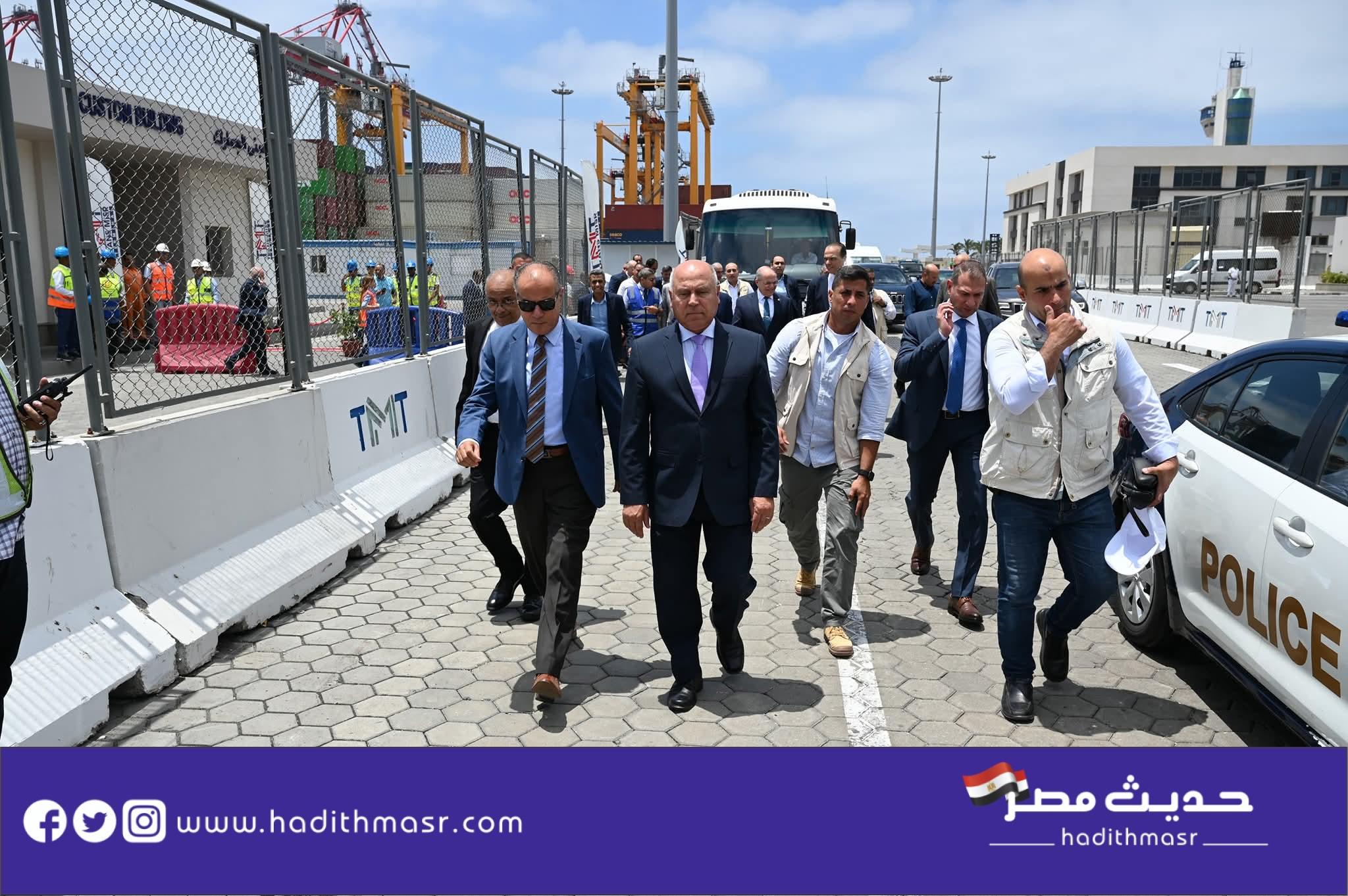 في اطار تنفيذ توجيهات فخامة الرئيس عبدالفتاح السيسي رئيس الجمهورية بتطوير كافة الموانىء المصرية بهدف تحويل مصر الى مركز اقليمي للنقل واللوجستيات وتجارة الترانزيت وفي إطار متابعة تنفيذ الممر اللوجيستي السخنة/ الدخيلة اللوجستي المتكامل ، قام الفريق كامل الوزير نائب رئيس مجلس الوزراء للتنمية الصناعية وزير الصناعة والنقل ، بجوله تفقدية لمتابعة مشروعات وزارة النقل بمينائي الاسكندرية الدخيلة والتي يتم تنفيذها في إطار خطة إنشاء ميناء الاسكندرية الكبير حيث بدأت الجولة بزيارة مقر شركة المجموعة المصرية للمحطات متعددة الأغراض بميناء الإسكندرية حيث كان في استقبال سيادته كل من اللواء/ نهاد شاهين نائب وزير النقل للنقل البحري واللواء طارق عبد الله رئيس قطاع النقل البحري واللواء ايهاب صلاح رئيس الهيئة العامة لميناء الإسكندرية واللواء عبد القادر درويش رئيس شركة المجموعة المصرية للمحطات متعددة الأغراض
