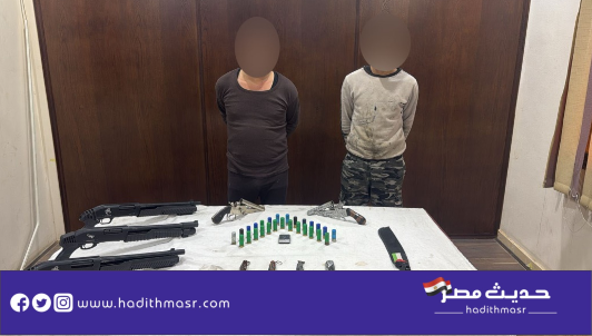 وعقب تقنين الإجراءات تم ضبطه وبحوزته (3 بنادق خرطوش – فرد خرطوش –5 أسلحة بيضاء – عدد من الطلقات مختلفة الأعيرة) وبمواجهته أقر بحيازته للمضبوطات بقصد الاتجار.