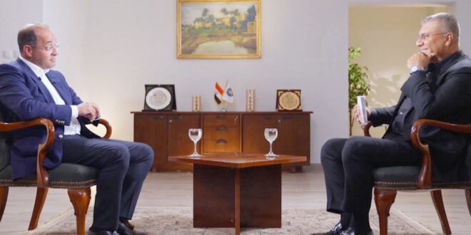 وزير المالية خلال لقائه مع الاعلامي عمرو الليثي