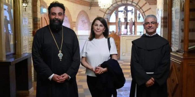 وكان في إستقبالهما رئيس الدير الأرشمندريت الدكتور ذمسكينوس الأزرعي، والذي بدروه رحب بهما ورافقهما ضمن جولة للكنائس والمزارات داخل الدير وأستقبلهم في صالون الدير، وقدم الأرشمندريت الأزرعي نبذة عن تاريخ الدير ونقل لهم أدعية صاحب الغبطة بابا وبطريرك الإسكندرية وسائر إفريقيا ثيوذوروس الثاني، حيث تخللت الزيارة حديثا حول العديد من المواضيع ذات الإهتمام المشترك