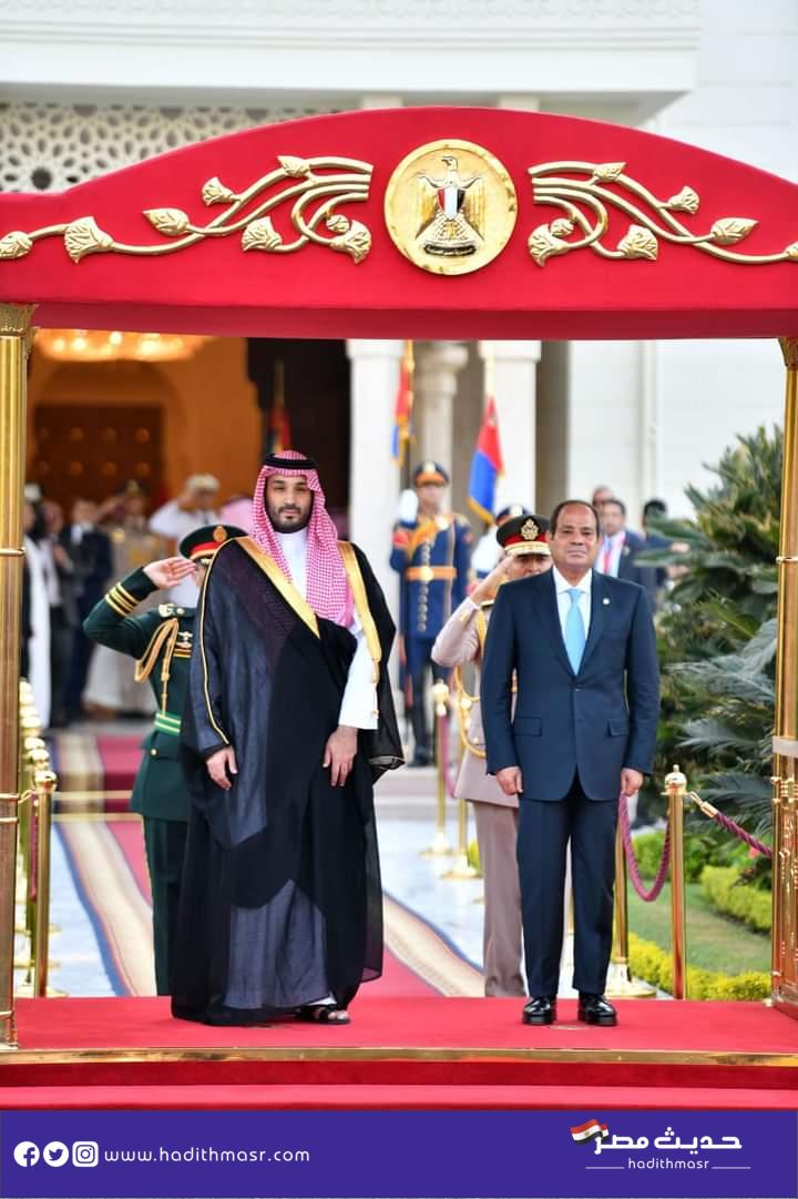 نحو ذلك، وصل الأمير محمد بن سلمان في زيارة رسمية إلى مصر، مساء أمس الثلاثاء، حيث كان في مقدمة مستقبليه الرئيس المصري، عبدالفتاح السيسي