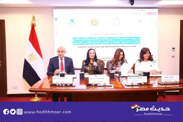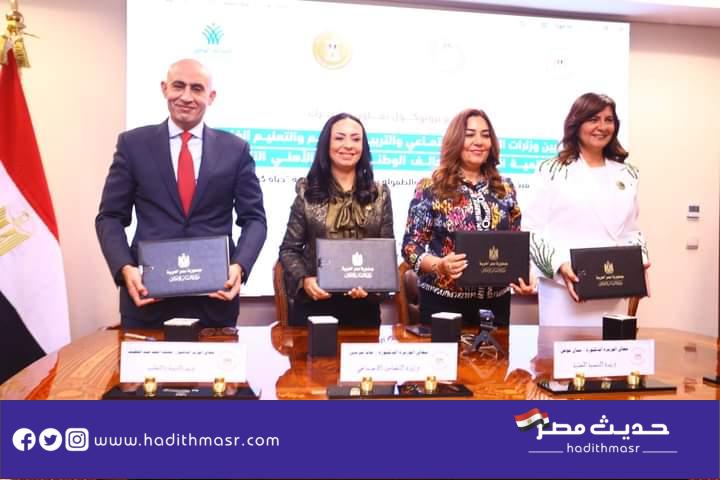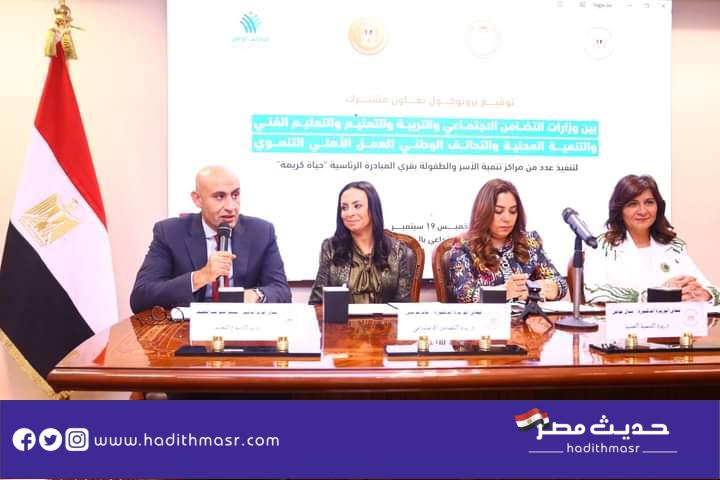 في إطار المبادرة الرئاسية ” بداية جديدة لبناء الإنسان” وقعت الدكتورة مايا مرسي وزيرة التضامن الاجتماعي، والسيد محمد عبداللطيف وزير التربية والتعليم والتعليم الفني، والدكتورة منال عوض وزيرة التنمية المحلية، والسفيرة نبيلة مكرم رئيس الأمانة الفنية للتحالف الوطني للعمل الأهلي التنموي بروتوكول تعاون مشترك، وذلك بمقر وزارة التضامن الاجتماعي بالعاصمة الإدارية الجديدة