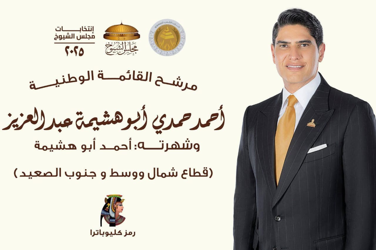 أحمد أبو هشيمة، قائمة شمال ووسط وجنوب الصعيد.. رجل صناعة وتنمية، قدّم دعمًا حقيقيًا للشباب والمجتمع في العديد من المحافظات من خلال مبادرات ملموسة على أرض الواقع ولا سيما محافظة بني سويف، يشغل منصب نائب رئيس الحزب ورئيس لجنة الشباب والرياضة بمجلس الشيوخ، ويؤمن بأن تمكين الإنسان هو الأساس لبناء وطن قوي