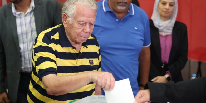 ادلي حسن حمدي، رئيس مجلس إدارة النادي الأهلي الأسبق، في مقر الجزيرة بصوته في الانتخابات