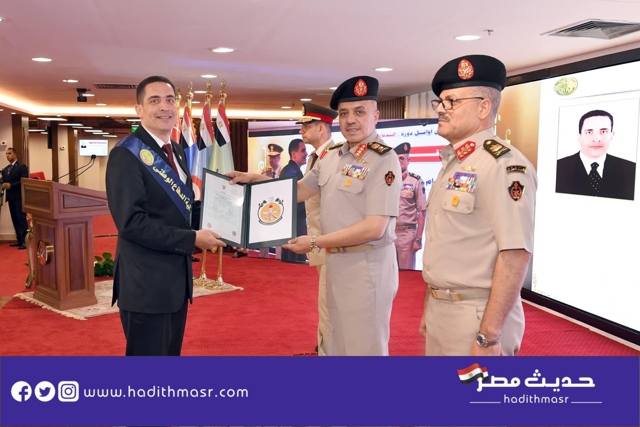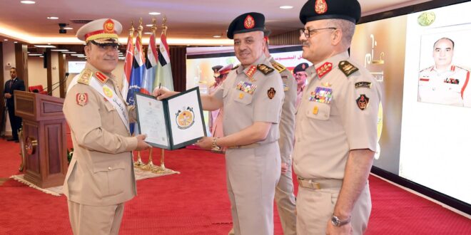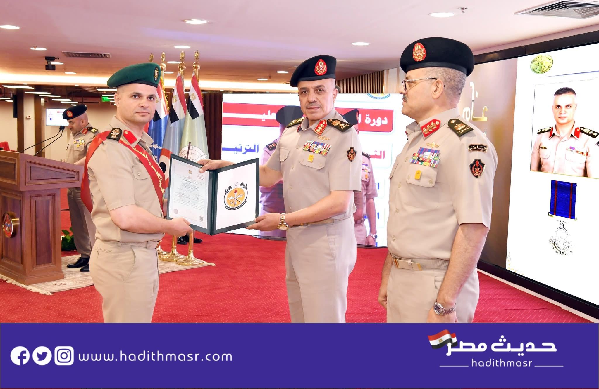 شهد الفريق | أحمد خليفة رئيس أركان حرب القوات المسلحة تخرج دفعات جديدة من دارسى الأكاديمية العسكرية للدراسات العليا والإستراتيجية ، والتى شملت الدورات ( 48 ) من كلية الحرب العليا ، و( 54 ) من كلية الدفاع الوطنى ، و( 26 ) للتأهيل العسكرى لقيادة التشكيلات ، كذلك الدورات ( 74 ) أركان حرب عام و( 46 – 47 ) أركان حرب تخصصية من كلية القادة والأركان والتى شملت دارسين من مصر و( 27 ) دولة شقيقة وصديقة ، وذلك بحضور الفريق الركن / صدام خليفة حفتر رئيس أركان القوات البرية بالجيش الليبى وقادة الأفرع الرئيسية وعدد من قادة القوات المسلحة وعدد من السفراء والملحقين العسكريين للدول الشقيقة والصديقة وعدد من الشخصيات العامة والإعلاميين