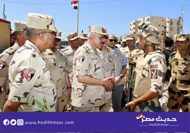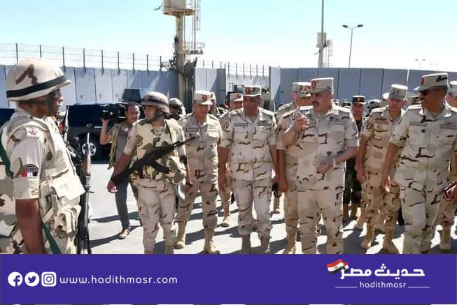 الشمالى الشرقى ، حيث بدأت الجولة بالمرور على القوات المكلفة بتأمين معبر رفح البرى ، وأكد رئيس أركان حرب القوات المسلحة أن المهمة الرئيسية للقوات المسلحة هى الحفاظ على حدود الدولة على كافة الإتجاهات الإستراتيجية وأن رجال القوات المسلحة قادرون على الدفاع عن حدود الوطن جيلاً بعد جيل ، مؤكداً على أهمية التحلى بالعلم والإرادة والحفاظ على اللياقة البدنية العالية لضمان تنفيذ كافة المهام بإحترافية عالية ، كما إطمأن على الحالة