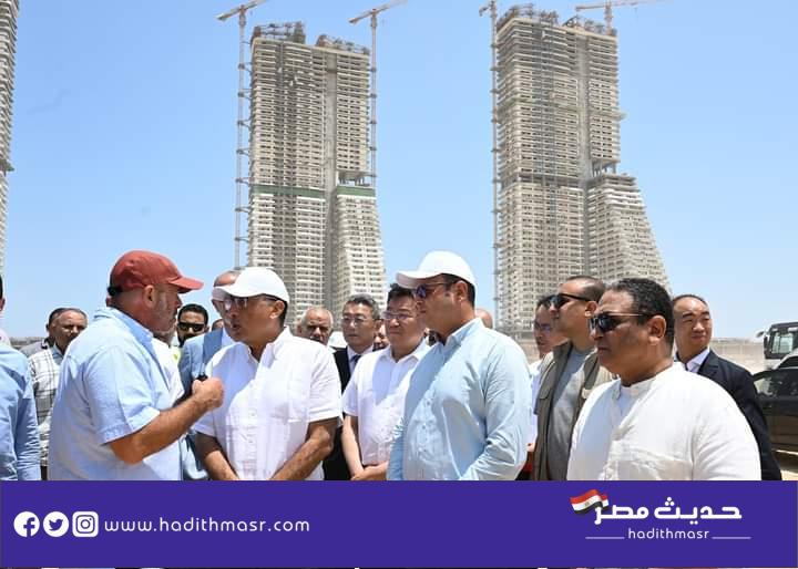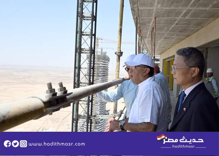واستمع رئيس الوزراء ايضاً إلى شرح من ممثلي الشركة الصينية المنفذة، الذين أوضحوا أن المشروع مقام على مساحة 835 فدانا، ويهدف إلى إنشاء عدد (5) أبراج، تتضمن البرج الإيقوني بارتفاع يصل إلى 250 مترا، حيث تم إنجاز ٥٤ دورا بالبرج الأيقوني، من إجمالى 68 دورا، بإجمالى مسطحات 465 ألف م2، مضيفين أنه يتم أيضا تنفيذ عدد (4) أبراج سكنية أخرى بارتفاع ٢٣٥ مترا للبرج (٥٦ دورا)، وبإجمالى مسطحات 320 ألف م2.