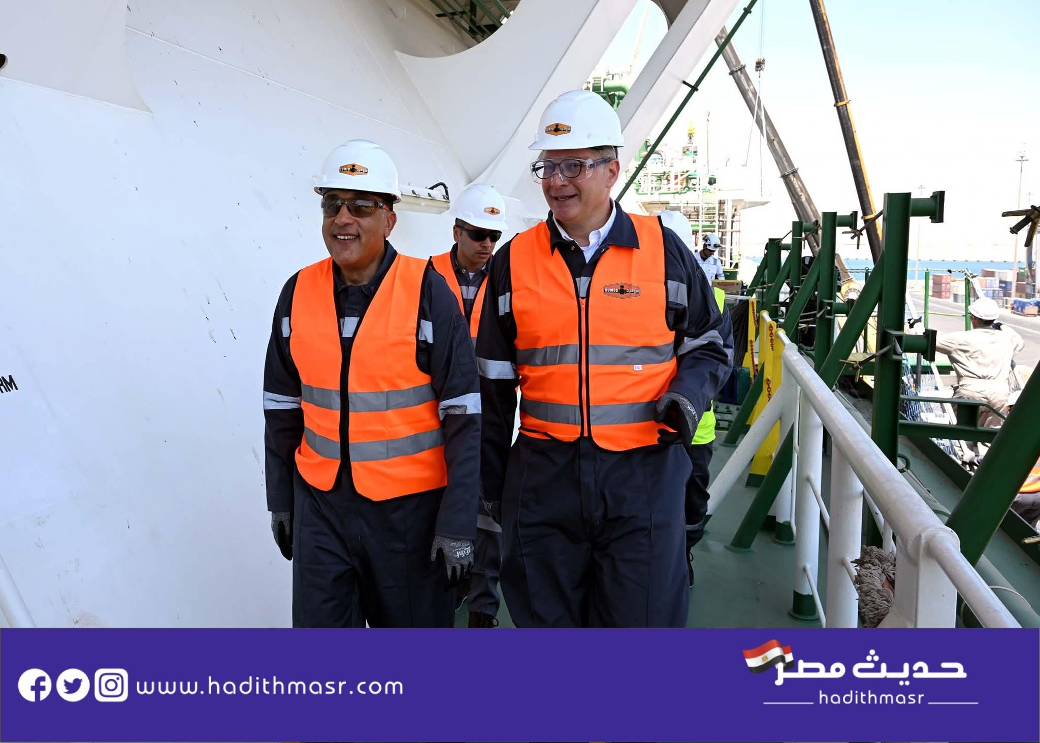 استهل الدكتور مصطفى مدبولي، رئيس مجلس الوزراء، جولته اليوم السبت بميناء العين السخنة بتفقد سفينة تغييز الغاز الطبيعي المسال “Energos Eskimo” ، ورافقه المهندس/ كريم بدوي، وزير البترول والثروة المعدنية، وقيادات قطاع البترول