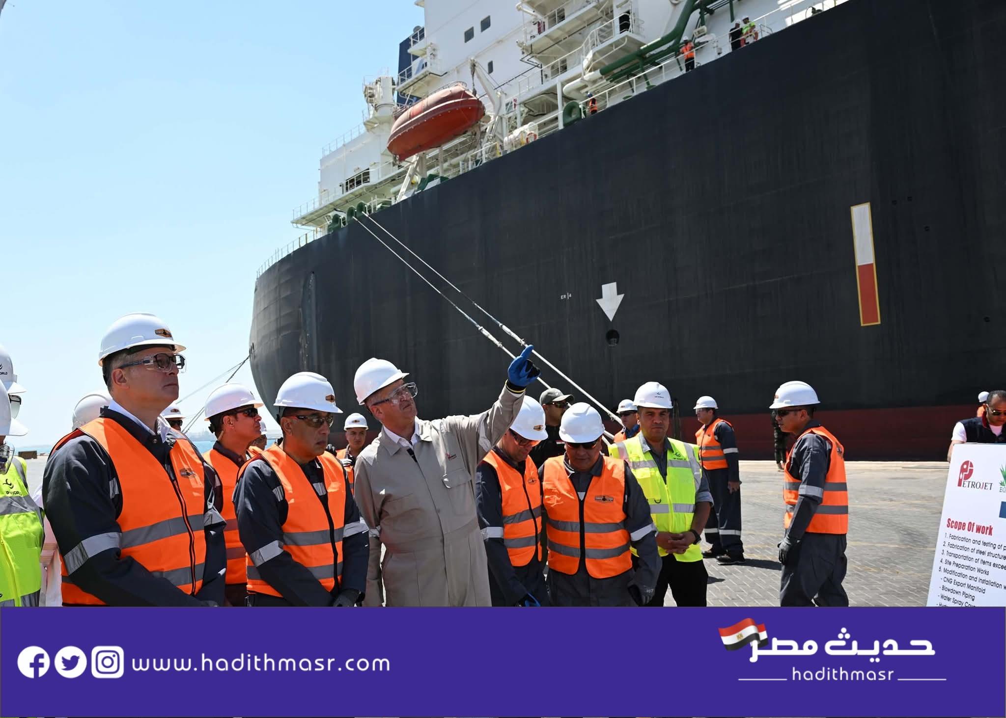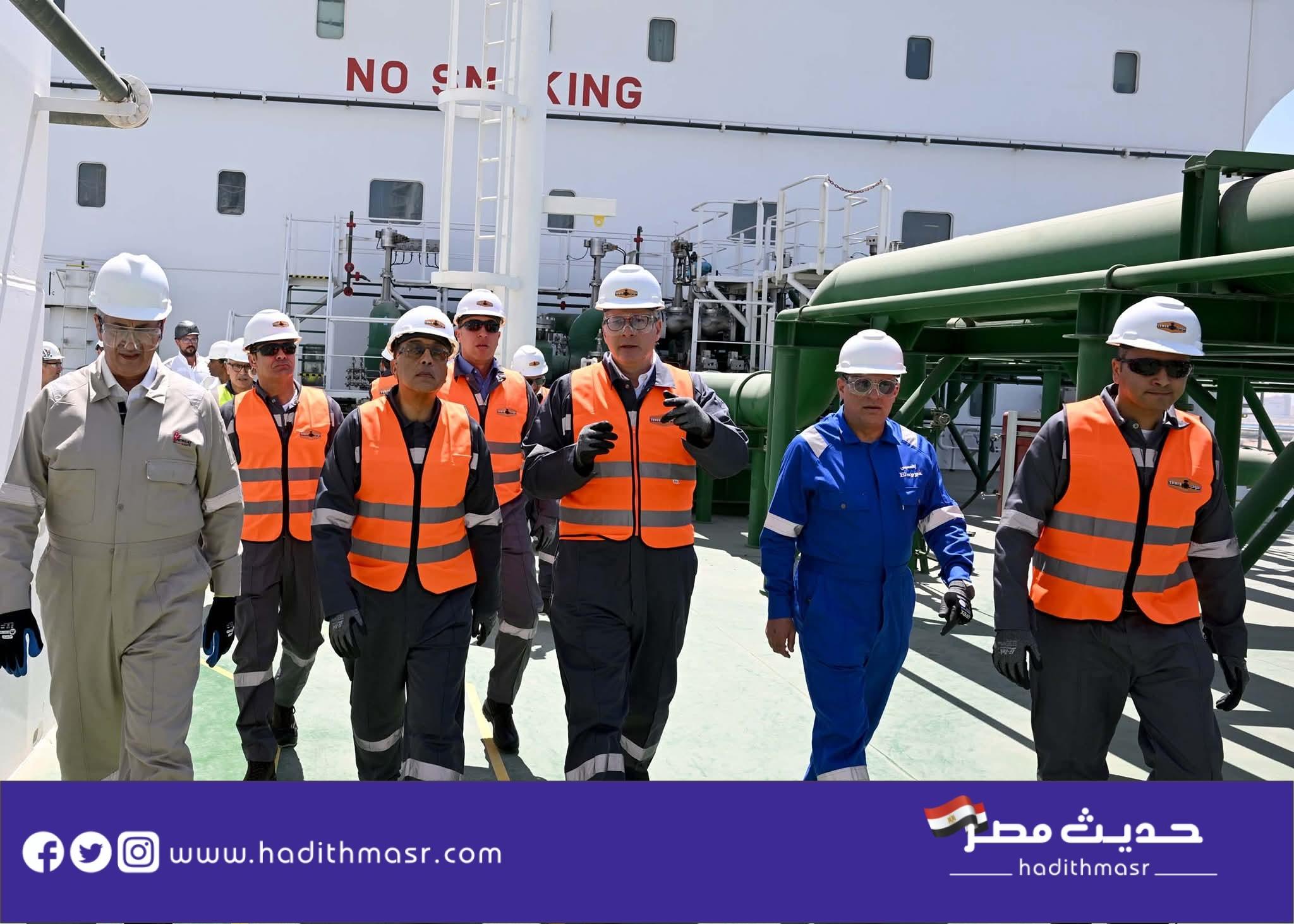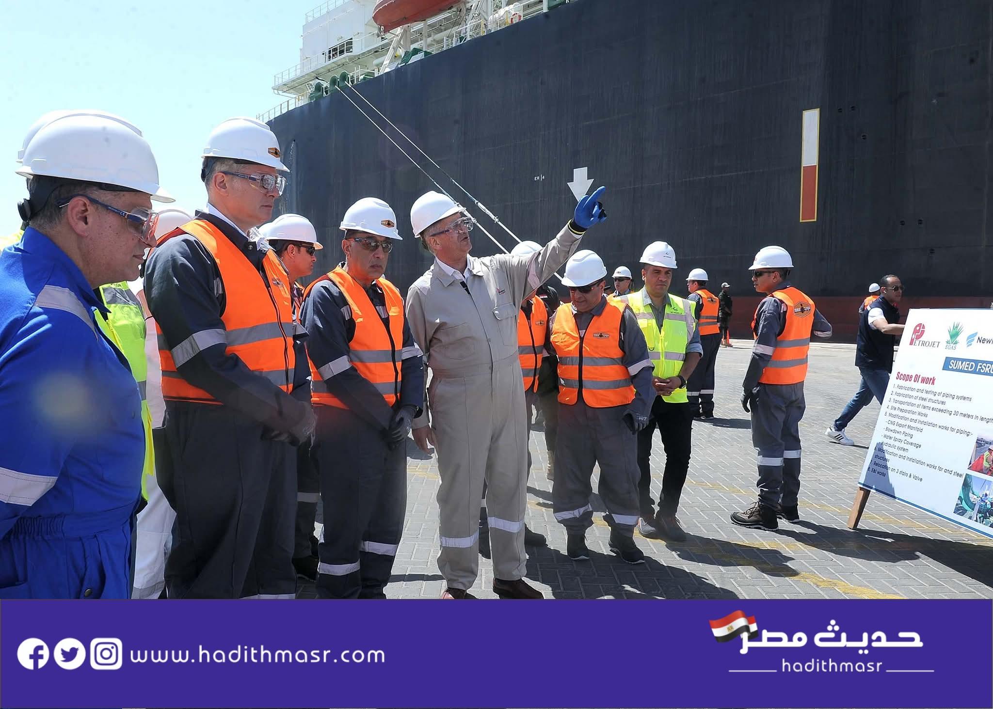 وخلال جولته التفقدية، اطلع رئيس مجلس الوزراء على الأعمال الفنية المتقدمة الجاري الانتهاء منها خلال أيام، التي تنفذها شركة بتروجت التابعة لقطاع البترول؛ تمهيدًا لتشغيل السفينة، ثم نقلها إلى رصيف ميناء سوميد بالسخنة؛ حيث تبلغ طاقتها التصميمية 750 مليون قدم مكعب من الغاز يوميًا.