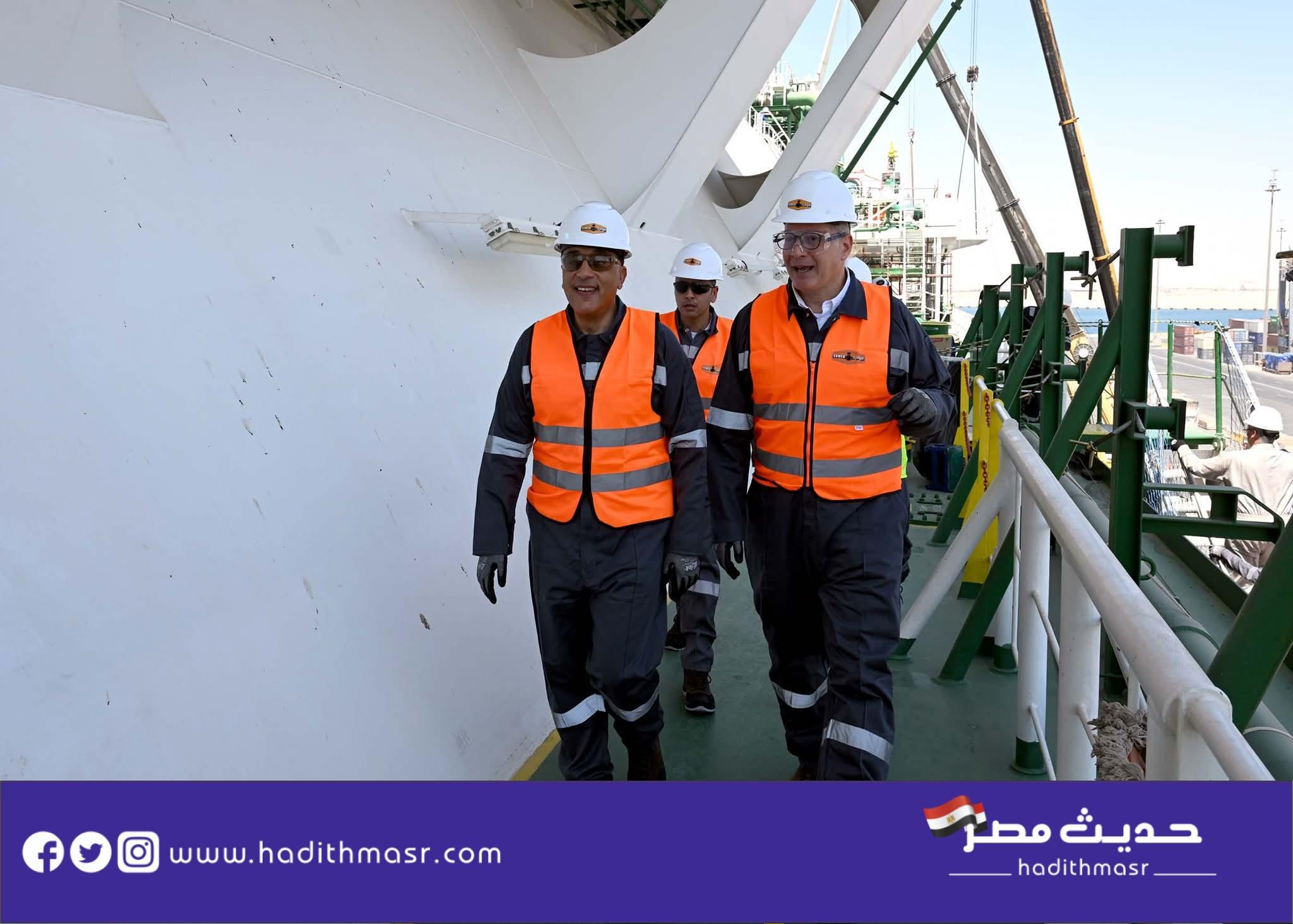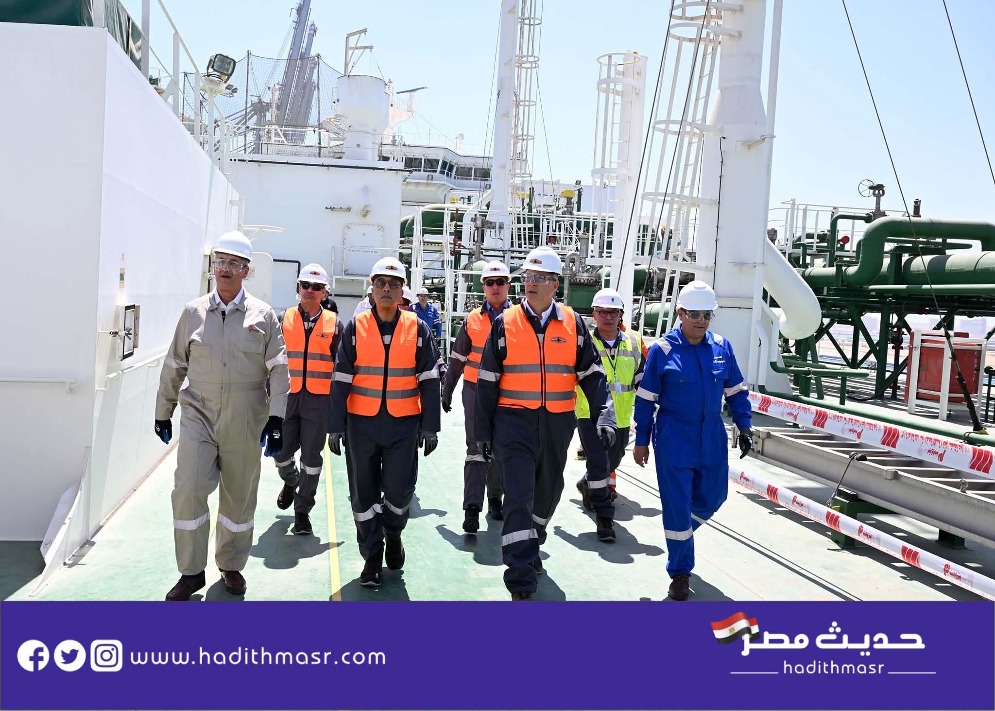 وخلال جولته التفقدية، اطلع رئيس مجلس الوزراء على الأعمال الفنية المتقدمة الجاري الانتهاء منها خلال أيام، التي تنفذها شركة بتروجت التابعة لقطاع البترول؛ تمهيدًا لتشغيل السفينة، ثم نقلها إلى رصيف ميناء سوميد بالسخنة؛ حيث تبلغ طاقتها التصميمية 750 مليون قدم مكعب من الغاز يوميًا.