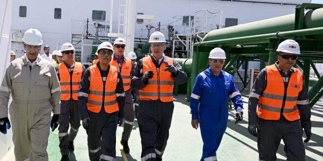 وأوضح المهندس/ كريم بدوي، وزير البترول والثروة المعدنية، أن فرق قطاع البترول انتهت من تجهيز رصيف ثانٍ بميناء سوميد لاستقبال السفينة، مع تركيب ذراعي تحميل وخطوط لنقل الغاز إلى الشبكة القومية، مشيرًا إلى أن فرق قطاع البترول تواصل حاليًا العمل بكفاءة عالية وسرعة لإنجاز الأعمال الفنية الخاصة بالسفينة، مع إجراء جولات متابعة ميدانية مستمرة للوقوف على تقدم العمل وضمان سرعة الانتهاء منه.