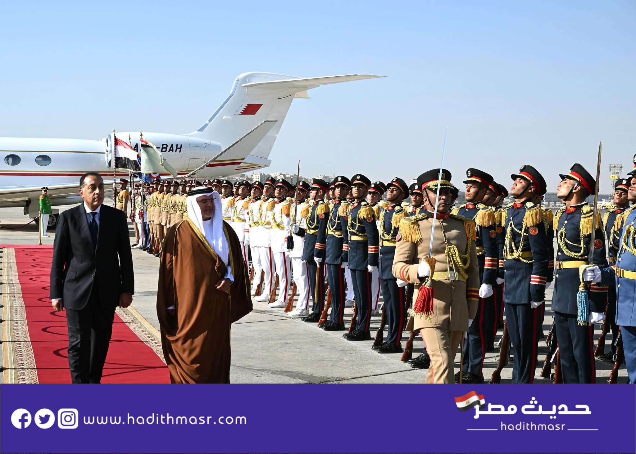 ولدى وصوله مطار القاهرة الدولي، أُقيمت مراسم استقبال رسمية لولي عهد مملكة البحرين الشقيقة والوفد المرافق له. وشهدت مراسم الاستقبال عزف السلاميْن الوطنيين لجمهورية مصر العربية ومملكة البحرين الشقيقة، أعقبه استعراض حرس الشرف، وذلك بحضور السفيرة/ فوزية بنت عبد الله زينل، سفيرة مملكة البحرين لدى مصر