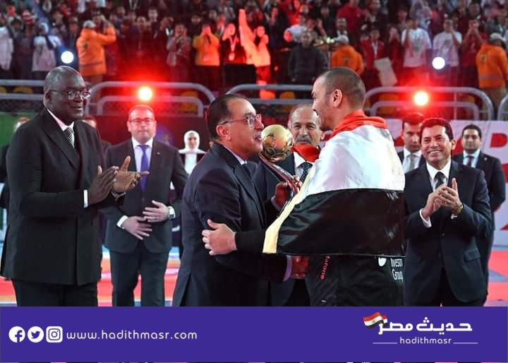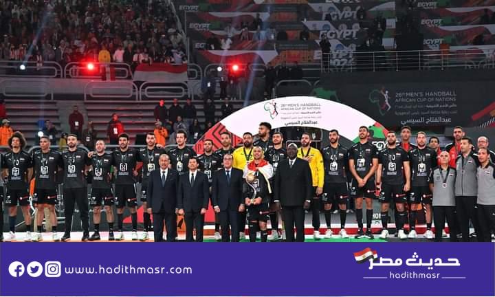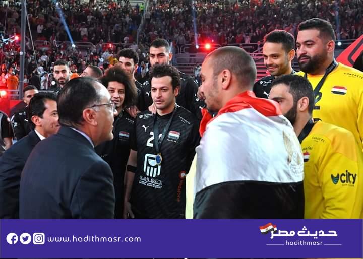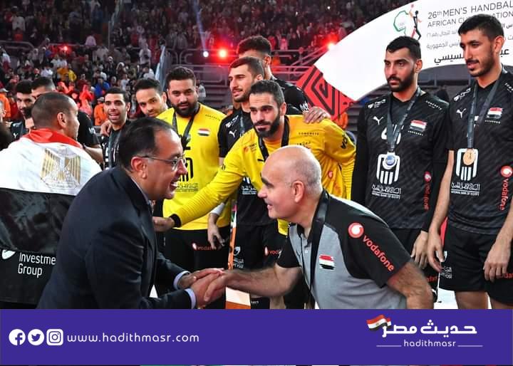 وفي ختام فعاليات حفل النسخة الـ 26 من بطولة كأس أمم أفريقيا لكرة اليد للرجال 2024، قام الدكتور مصطفى مدبولي بتسليم كأس البطولة، إلى المنتخب المصري الفائز بلقب بطولة كأس أمم أفريقيا لليد للرجال 2024، مقدماً لهم التهنئة بهذا الفوز المستحق الذي يُعد الثالث على التوالي ببطولة كأس أمم أفريقيا، كما يُعد اللقب الأفريقي التاسع فى تاريخه، مشيداً بالأداء المتميز والرجولي لأبطال المنتخب المصري، وجهازه الفني، الذين حرصوا على اسعاد الشعب المصري بحصولهم على هذه البطولة المؤهلة إلى أولمبياد باريس 2024. كما حرص رئيس الوزراء على توجيه الشكر للسادة المسئولين عن التنظيم باستاد القاهرة الدولي لما بذلوه من جهد مقدر أسهم في خروج البطولة بهذه الصورة المشرفة