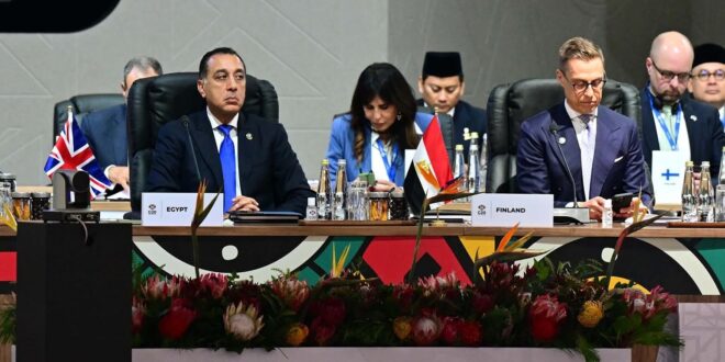 نيابة عن فخامة الرئيس عبدالفتاح السيسي، رئيس الجمهورية، شارك الدكتور/ مصطفى مدبولي، رئيس مجلس الوزراء، صباح اليوم، في فعاليات الجلسة الافتتاحية لقمة مجموعة العشرين (G20) لعام 2025 ، المقامة بمدينة جوهانسبرج بجنوب أفريقيا، على مدار يومي 22 و23 نوفمبر الجاري، وذلك بحضور الدكتور/ بدر عبدالعاطي، وزير الخارجية والهجرة وشئون المصريين بالخارج، والسفير شريف كامل، الممثل الشخصي للسيد رئيس الجمهورية لدى مجموعة العشرين وتجمع البريكس، مساعد وزير الخارجية للشئون الاقتصادية متعددة الأطراف الدولية والإقليمية، والسفير/ أحمد علي شريف، سفير مصر لدى جنوب أفريقيا.