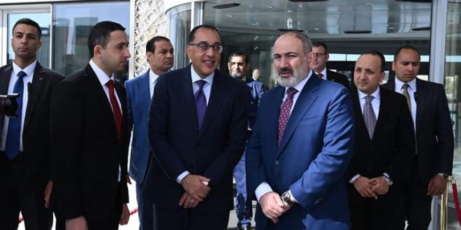 استقبل الدكتور مصطفى مدبولي، رئيس مجلس الوزراء، صباح اليوم، السيد نيكول باشينيان، رئيس وزراء جمهورية أرمينيا، والوفد المرافق له الذي ضم السيد/ أرارات ميرزويان، وزير الخارجية الأرمني، والسيد هاكوب، سيميديان، وزير البيئة الأرمني، والسيد هارتشيا بولاديان، سفير جمهورية أرمينيا لدى القاهرة، وعدد من المسئولين الحكوميين وممثلي مجتمع الأعمال الأرمني