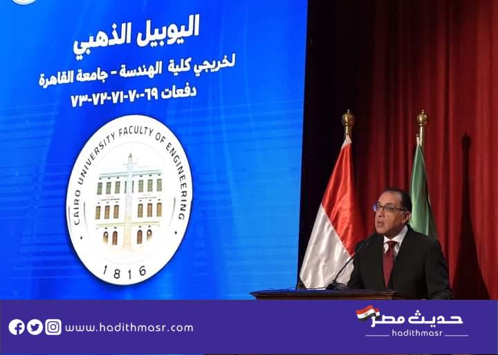 ألقى الدكتور مصطفى مدبولي، رئيس مجلس الوزراء، كلمة، خلال الاحتفالية، رحب في مستهلها، بالدكتور أحمد نظيف، رئيس وزراء مصر الأسبق، والمهندس إبراهيم، رئيس وزراء مصر الأسبق، والسادة الوزراء، ورؤساء الجامعات، والمحافظين، وأساتذة كلية الهندسة بجامعة القاهرة