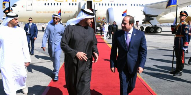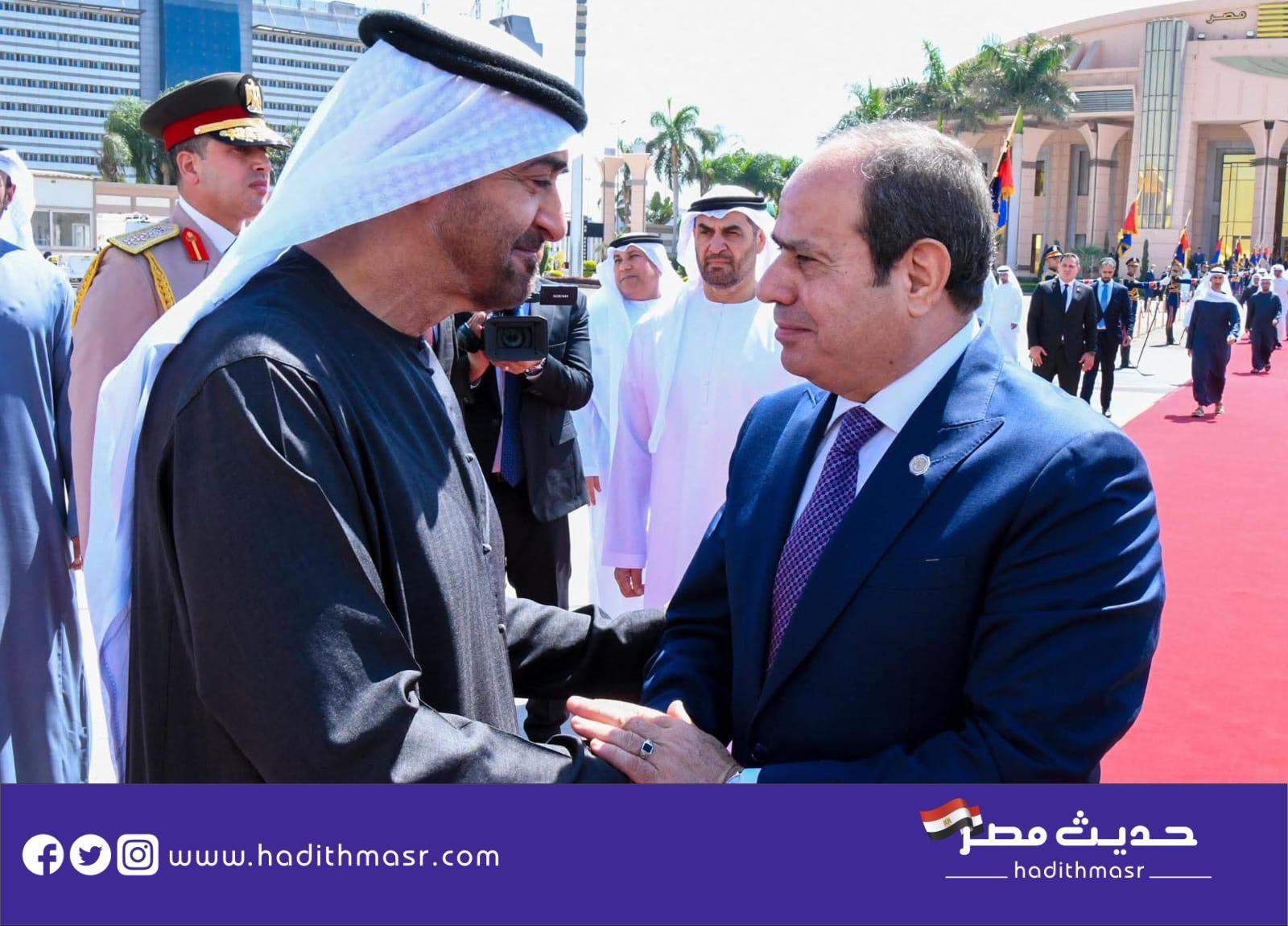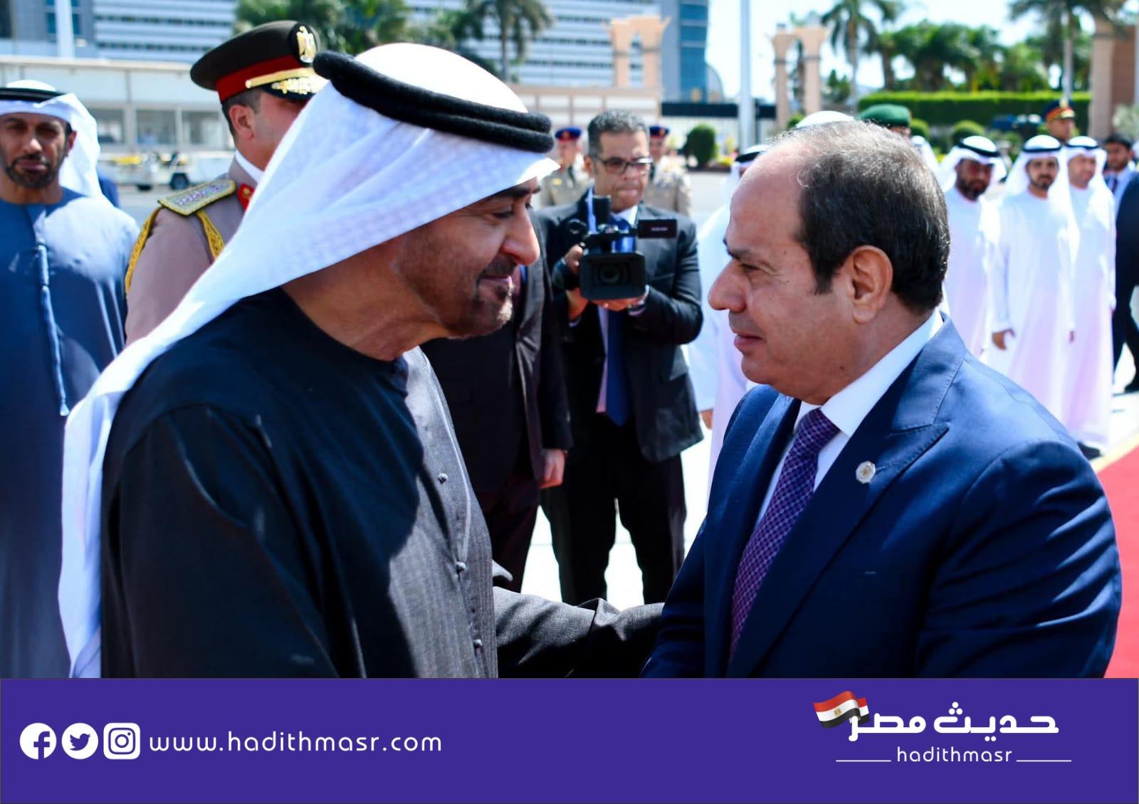 استقبل الرئيس عبد الفتاح السيسي، اليوم الأثنين صاحب السمو الشيخ محمد بن زايد آل نهيان رئيس دولة الإمارات العربية المتحدة ” بمطار القاهرة الدولي في إطار زيارة أخوية، يحلّ خلالها ضيفاً عزيزاً على وطنه الثاني، كما تأتي هذه الزيارة امتداداً للتشاور المستمر والتنسيق الوثيق بين قيادتي البلدين الشقيقين