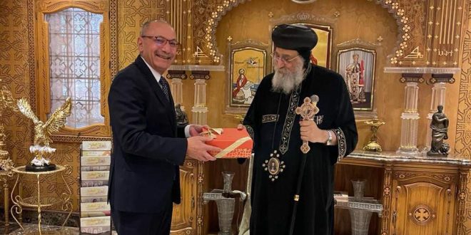 زار سفير تركيا بالقاهرة صالح موطلو شن قداسة البابا تواضروس الثاني بابا الكنيسة القبطية الأرثوذكسية في مكتبه.