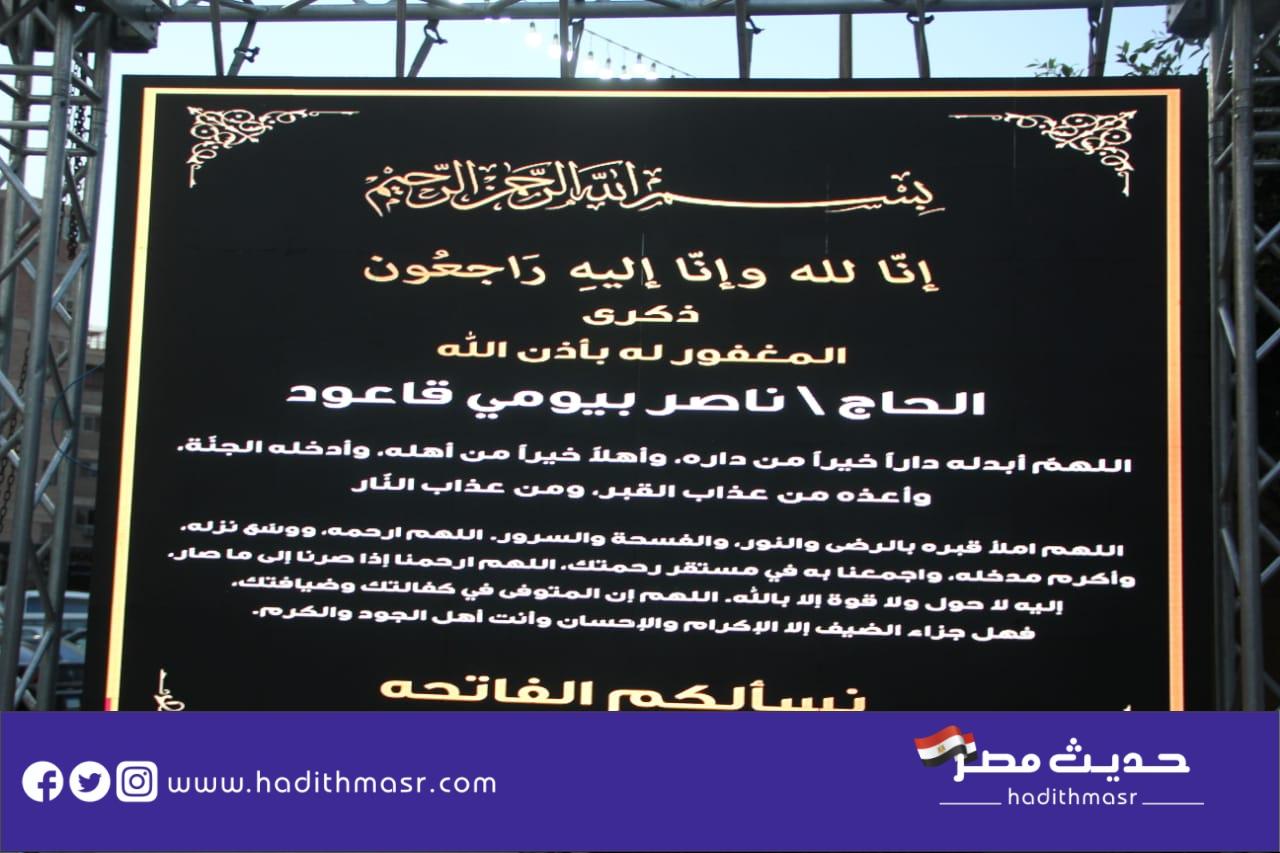 أحيا رجل الأعمال أدهم قاعود ” نجل رجل الأعمال الراحل الحاج ناصر بيومي قاعود “الذكري السنوية لوفاة والده وذلك داخل مدارس المستقبل بمنطقة فيصل بالجيزة في سرداق ضخم جمع كبار المسئولين والشخصيات العامة
