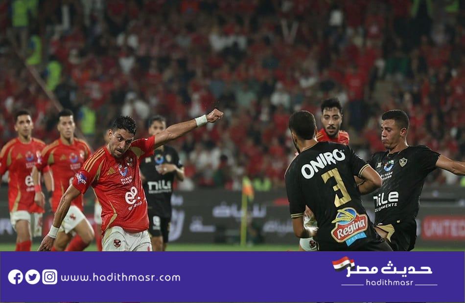 بدأت المباراة بضغط مبكر من الزمالك، حيث سدد أحمد سيد زيزو كرة قوية في الدقيقة الخامسة لكنها مرت فوق العارضة. وفي الدقيقة الثامنة، أتيحت فرصة رائعة للأهلي عندما انطلق حسين الشحات، لكن تصديه الرائع من الحارس محمد عواد حال دون تسجيل هدف