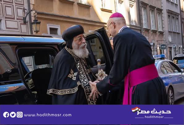 زار قداسة البابا تواضروس الثاني والوفد المرافق له، رئيس أساقفة وارسو للكنيسة الكاثوليكية، المطران أدريان چوزيف غالباس، في بازيليك يوحنا المعمدان، بالعاصمة البولندية وارسو