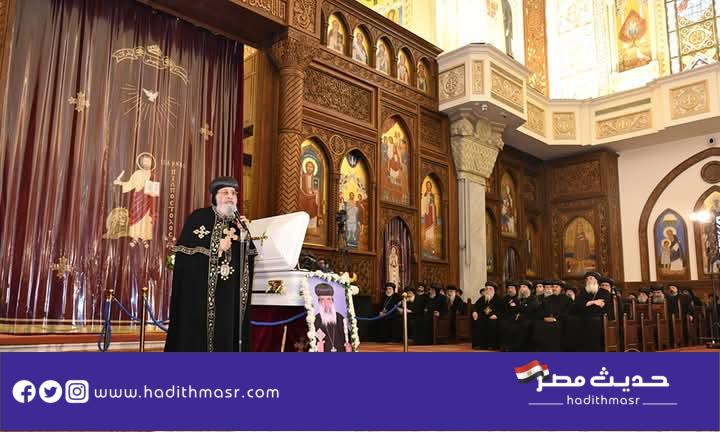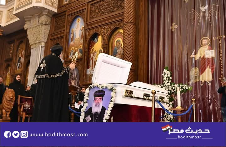 صلى قداسة البابا تواضروس الثاني في الثانية عشرة من بعد ظهر اليوم الأربعاء صلوات تجنيز مثلث الرحمات نيافة الأنبا أغابيوس مطران إيبارشية ديرمواس ودلجا الذي رقد في الرب بشيخوخة صالحة أمس