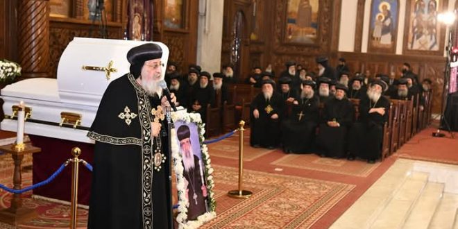 صلى قداسة البابا تواضروس الثاني في الثانية عشرة من بعد ظهر اليوم الأربعاء صلوات تجنيز مثلث الرحمات نيافة الأنبا أغابيوس مطران إيبارشية ديرمواس ودلجا الذي رقد في الرب بشيخوخة صالحة أمس