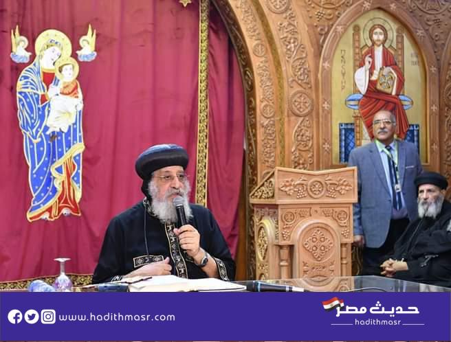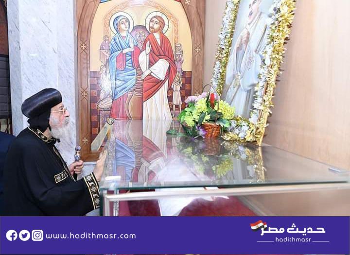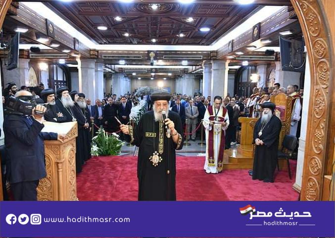 وقبل بدء العظة، قدم قداسة البابا الشكر لنيافة الأنبا مارتيروس والآباء الكهنة وخورس الشمامسة والكورال، معربًا عن سعادته، بزيارته للكنيسة، لافتًا إلى أنها تتميز باحتوائها جسد الأرشيدياكون حبيب جرجس، الذي كانت له بصمة واضحة ومؤثرة في تاريخ الكنيسة المعاصر، لذا فإن الكنيسة اعترفت بقداسته منذ ١١ سنة