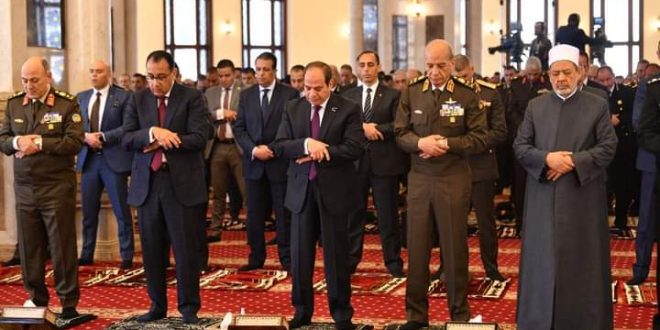 أدى الرئيس عبد الفتاح السيسي رئيس الجمهورية ” اليوم صلاة الجمعة بمسجد المشير طنطاوي بالتجمع الخامس بحضور الدكتور مصطفى مدبولي رئيس مجلس الوزراء والفريق أول محمد زكي وزير الدفاع واللواء محمود توفيق وزير الداخلية وفضيلة الإمام أحمد الطيب شيخ الأزهر، وكبرى قادة القوات المسلحة بمناسبة ذكرى انتصارات العاشر من رمضان.
