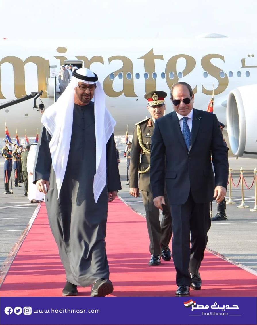استقبل الرئيس عبد الفتاح السيسي رئيس الجمهورية ” اليوم السبت الرئيس الإماراتى الشيخ محمد بن زايد آل نهيان بمطار القاهرة الدولي